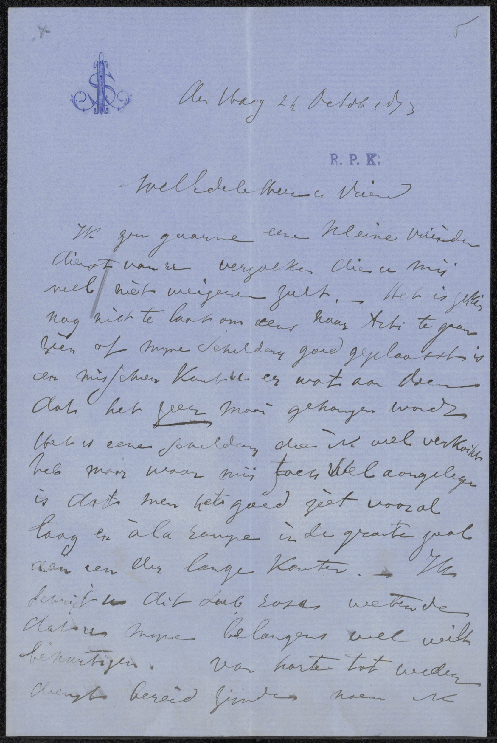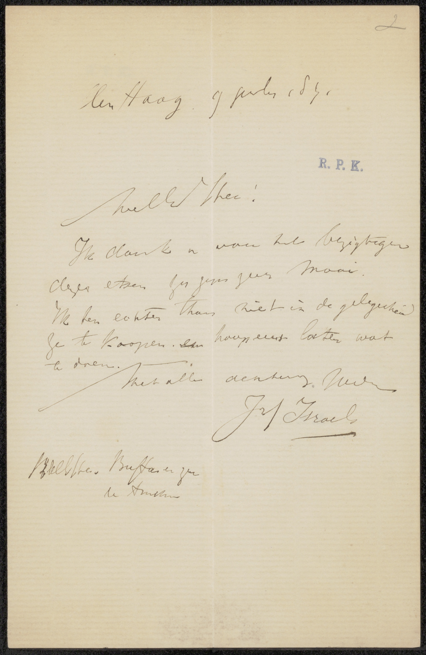Brief aan Pieter Haverkorn van Rijsewijk