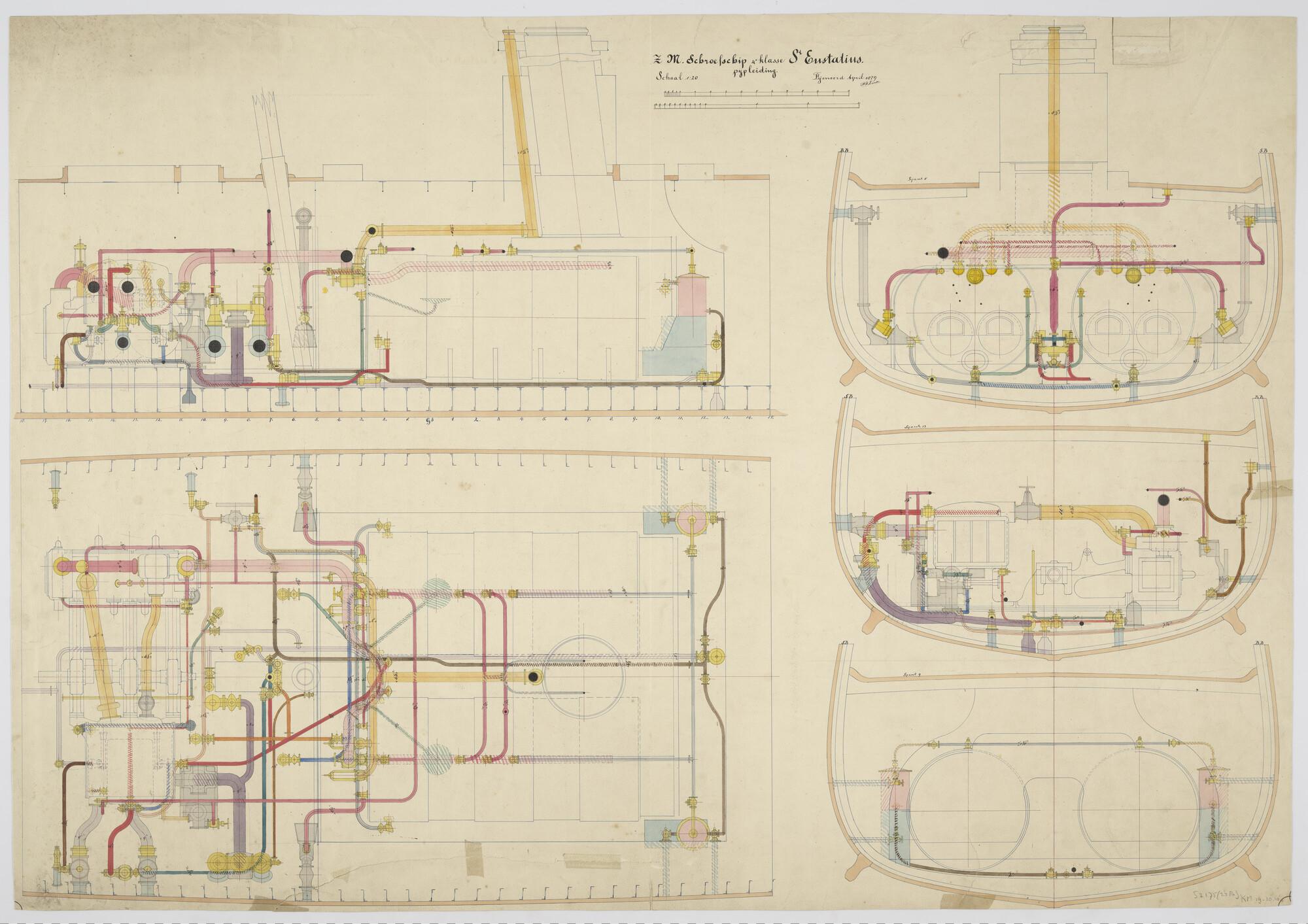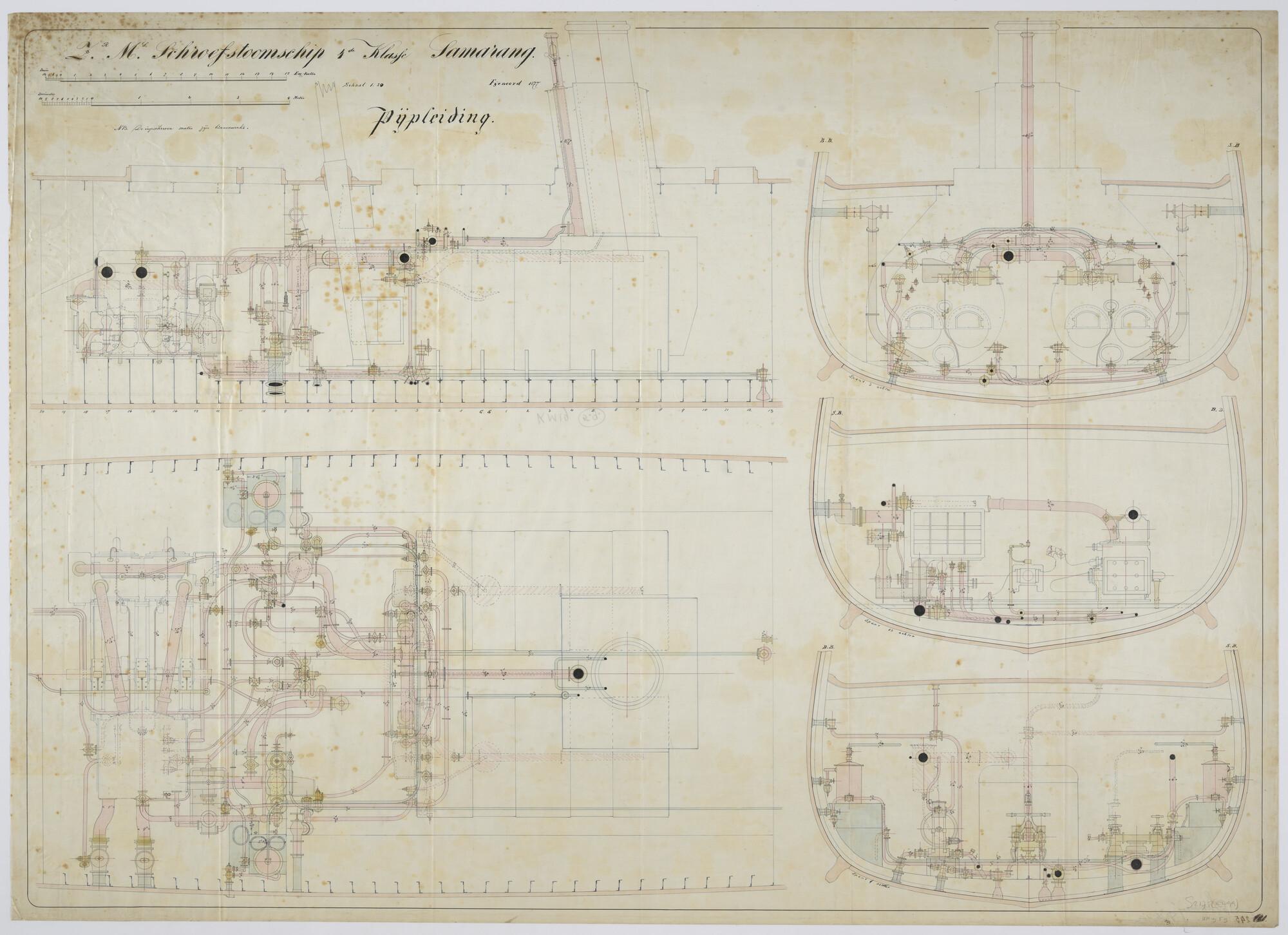 Pijpleidingen in de machinekamer en in het ketelruim...