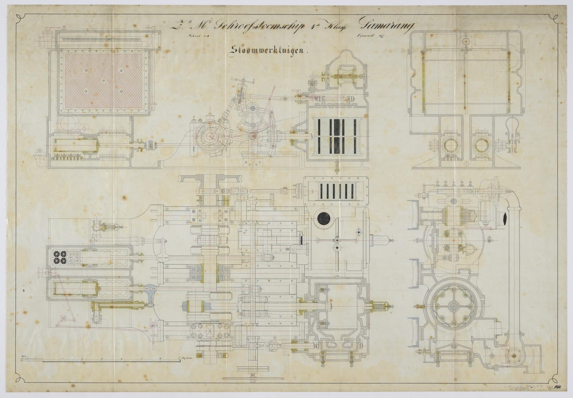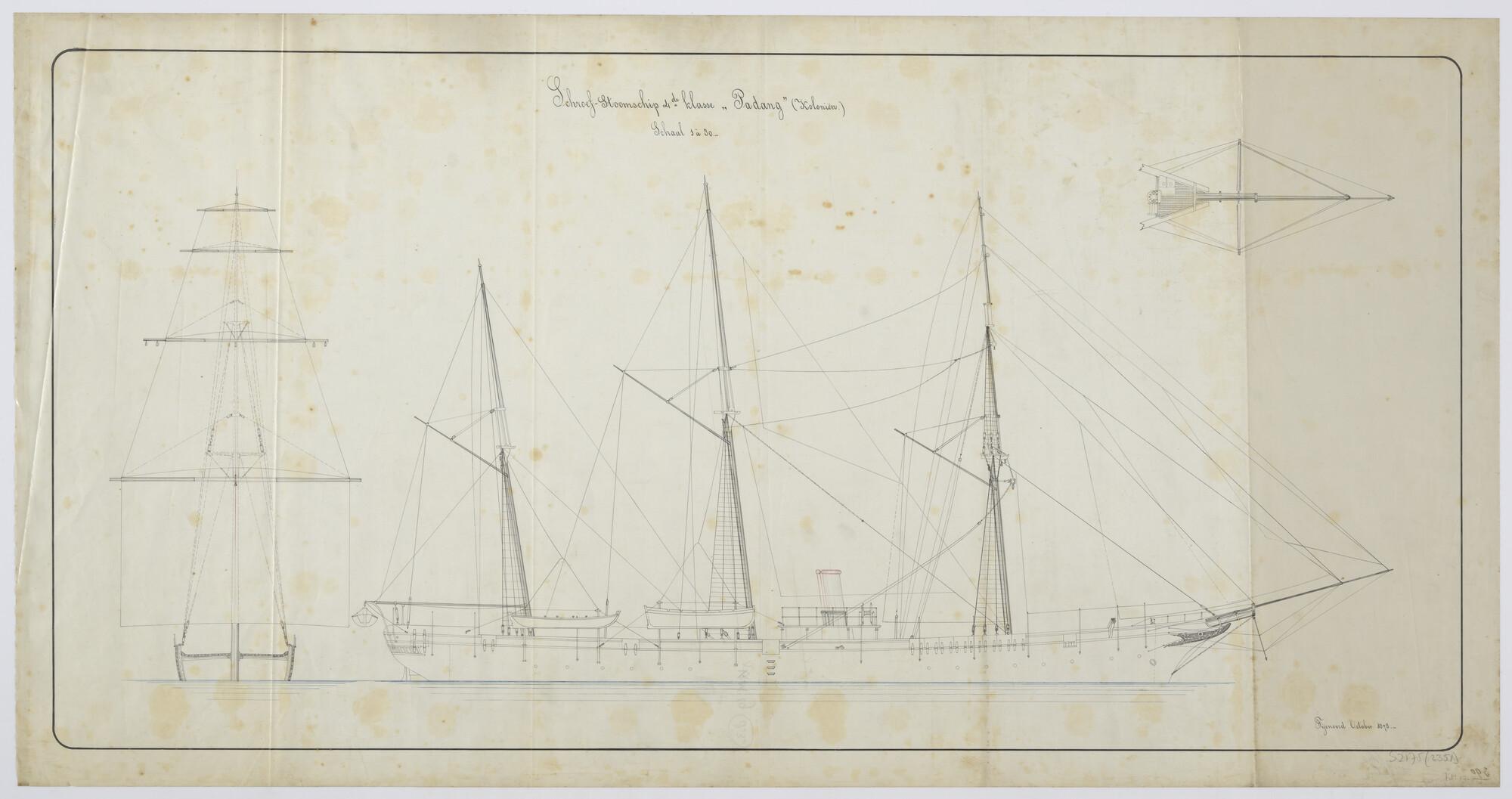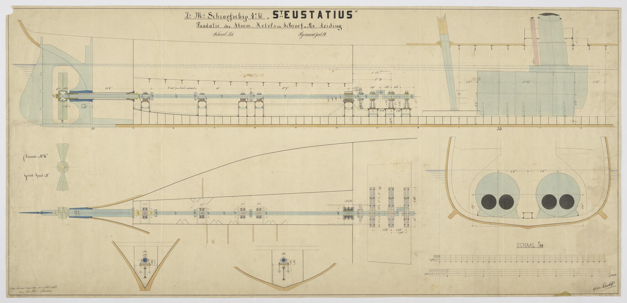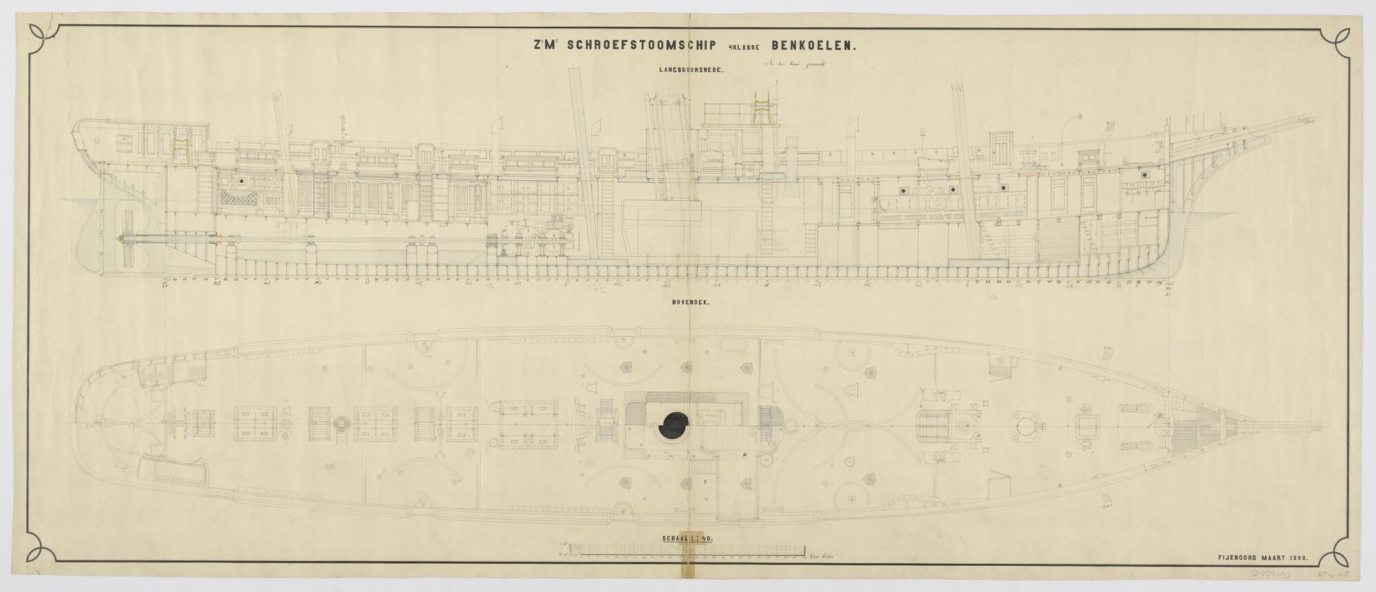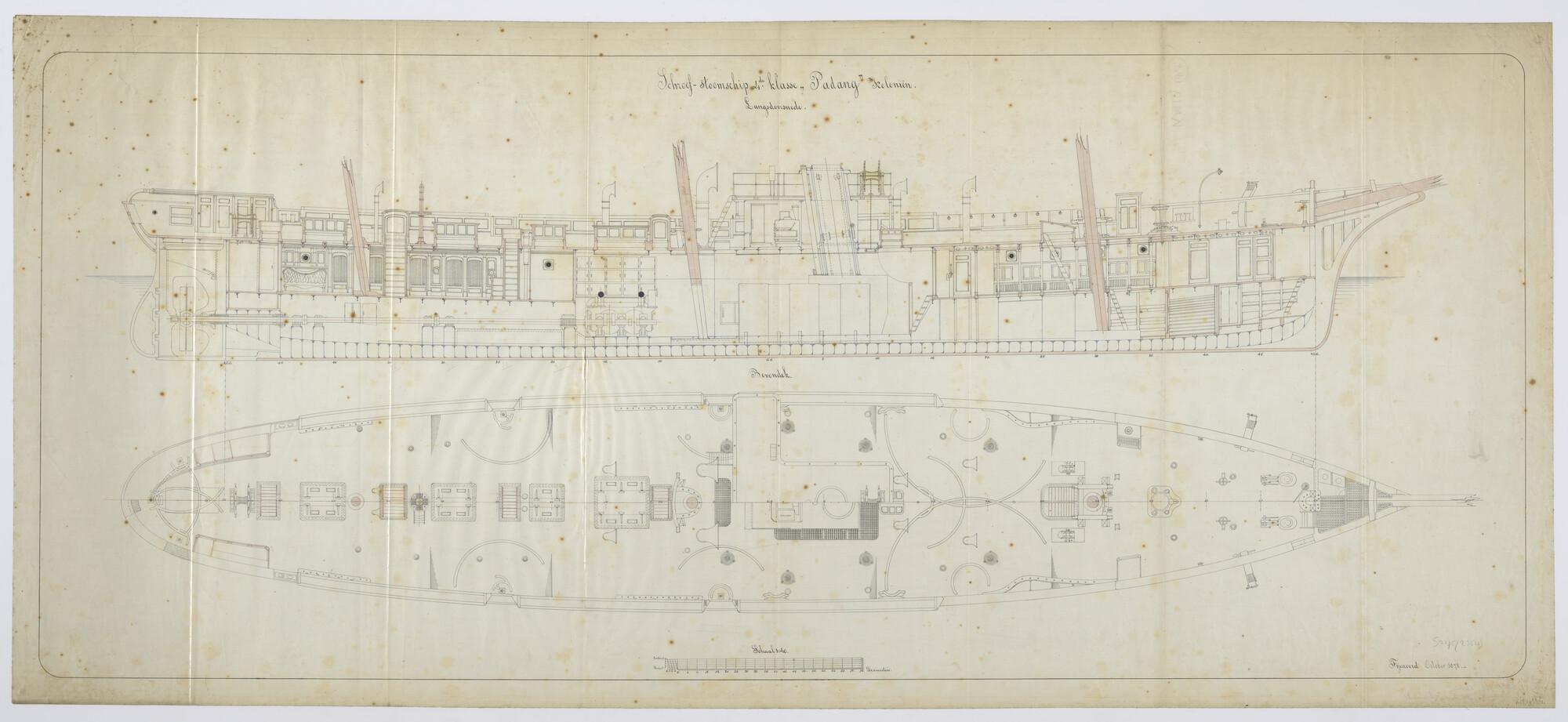 Langsscheepse doorsnede en indelingstekening van het...