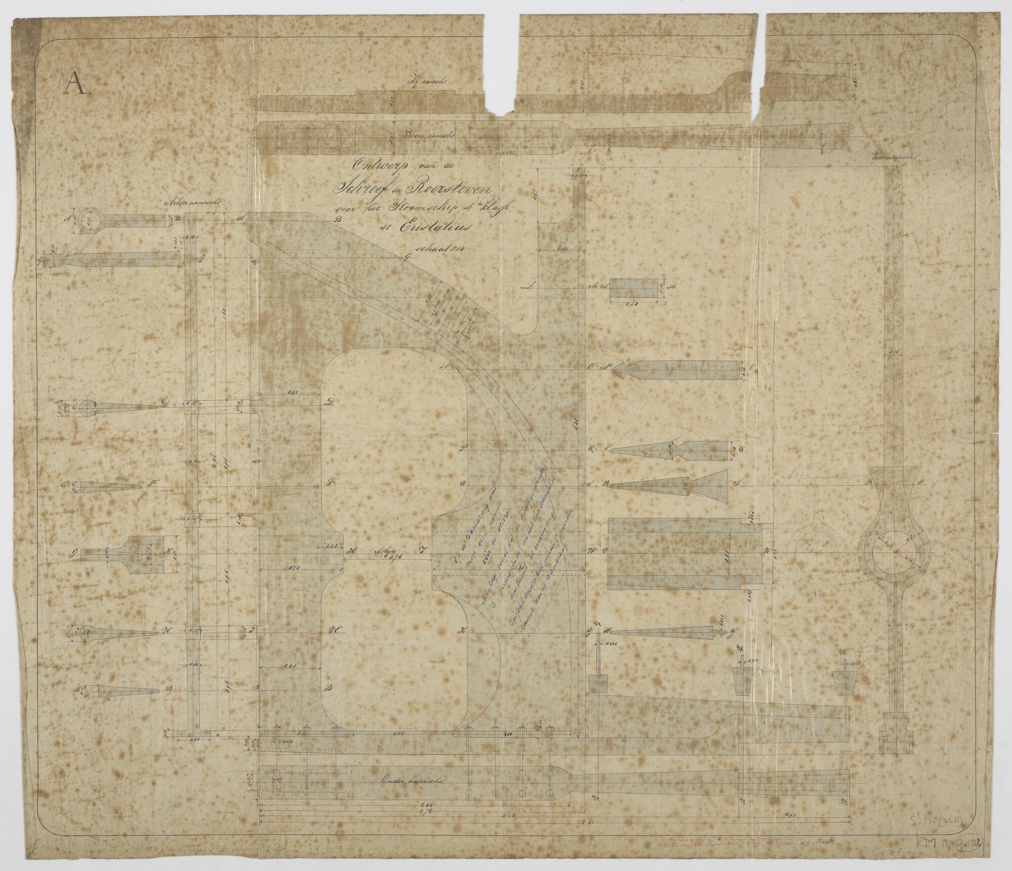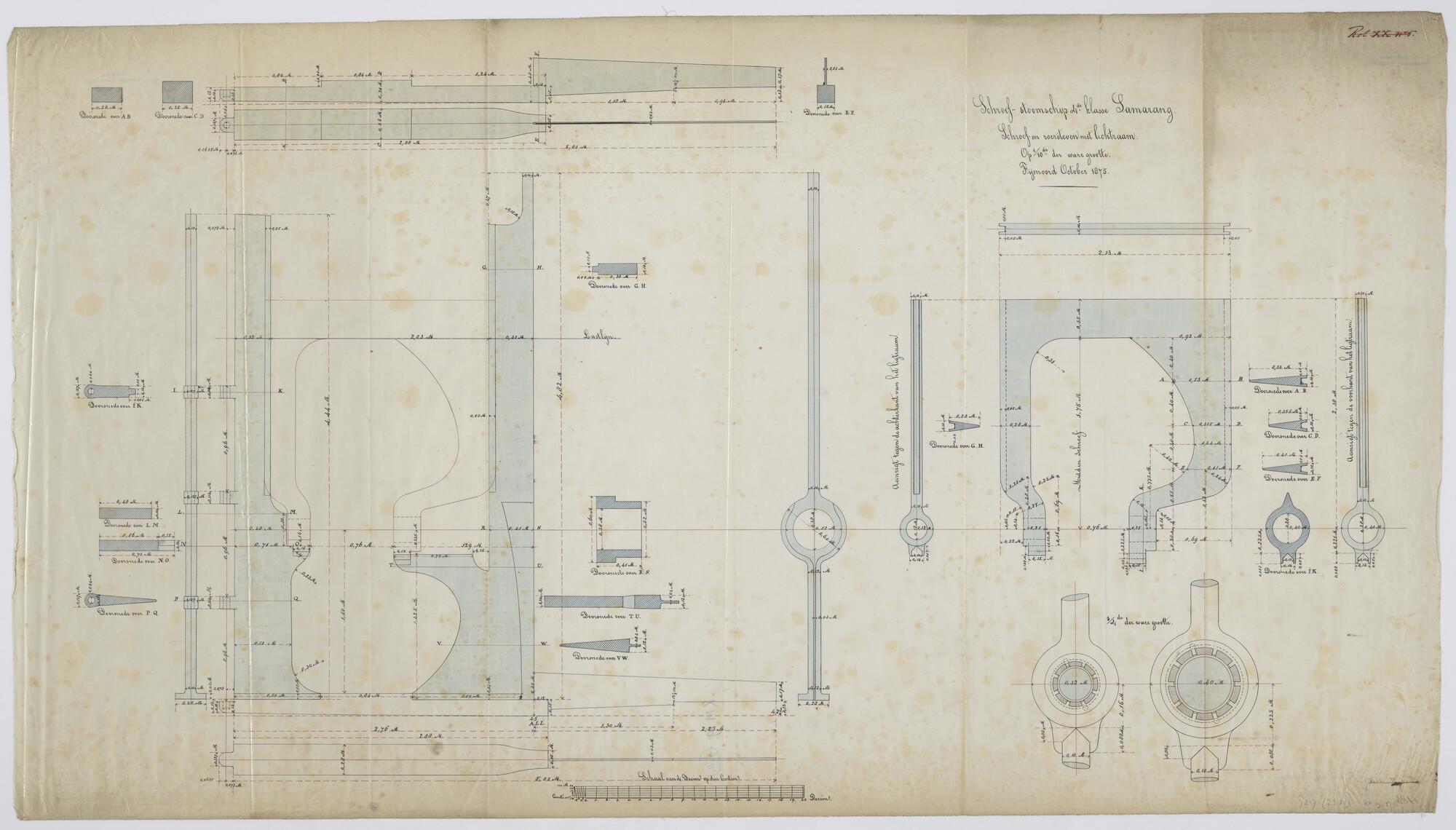 Diverse doorsneden van de schroef met roersteven en ...
