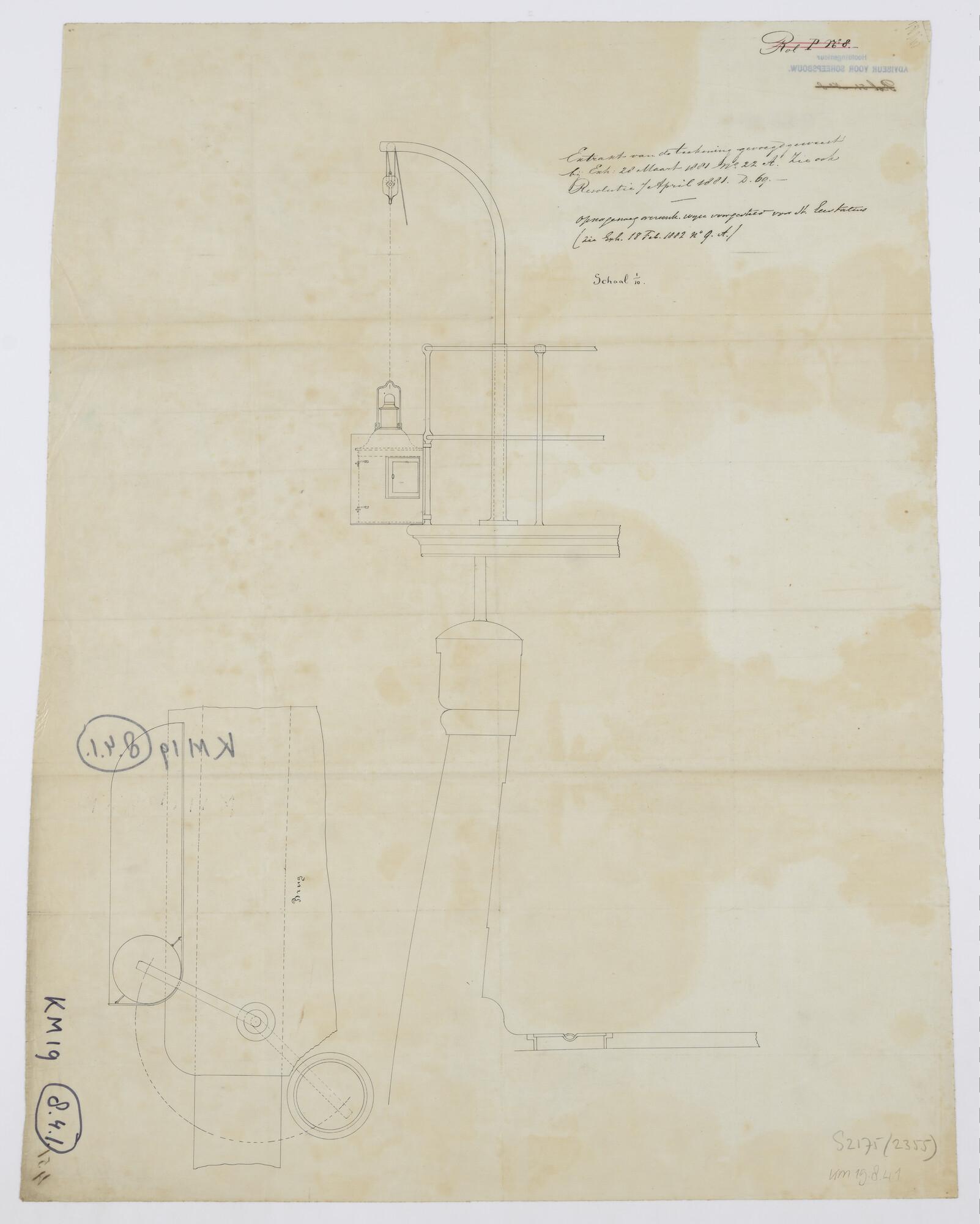 Verticale dwarsdoorsnede en bovenaanzicht van het st...