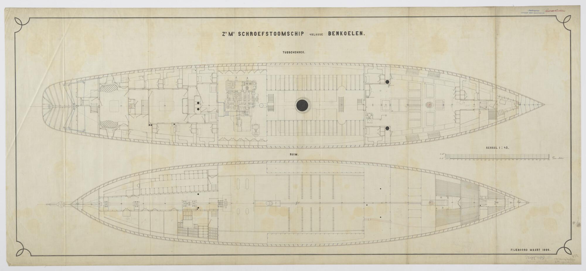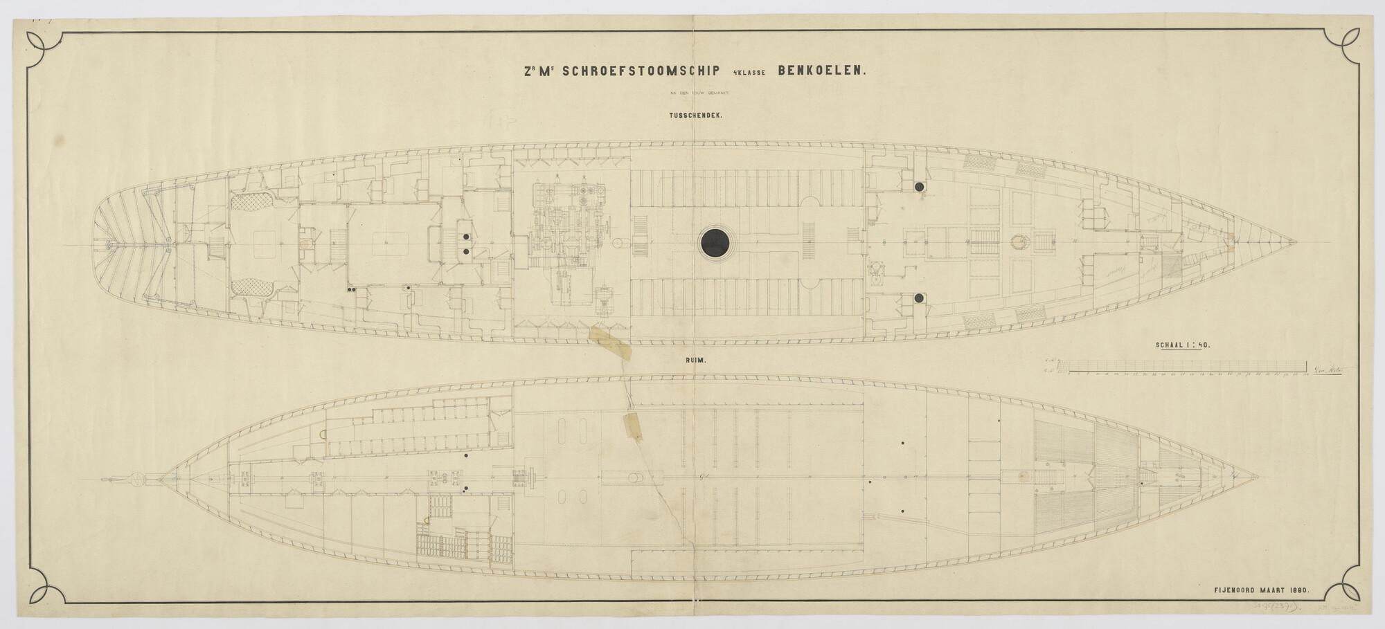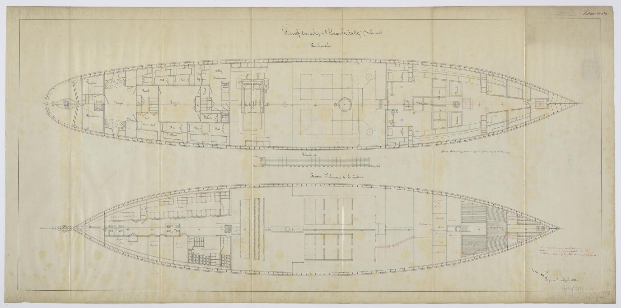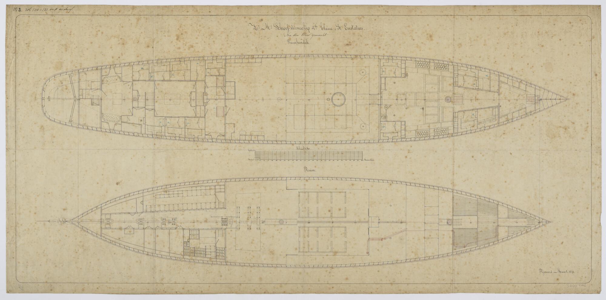 Indelingstekening van het tussendek en van het ruim ...