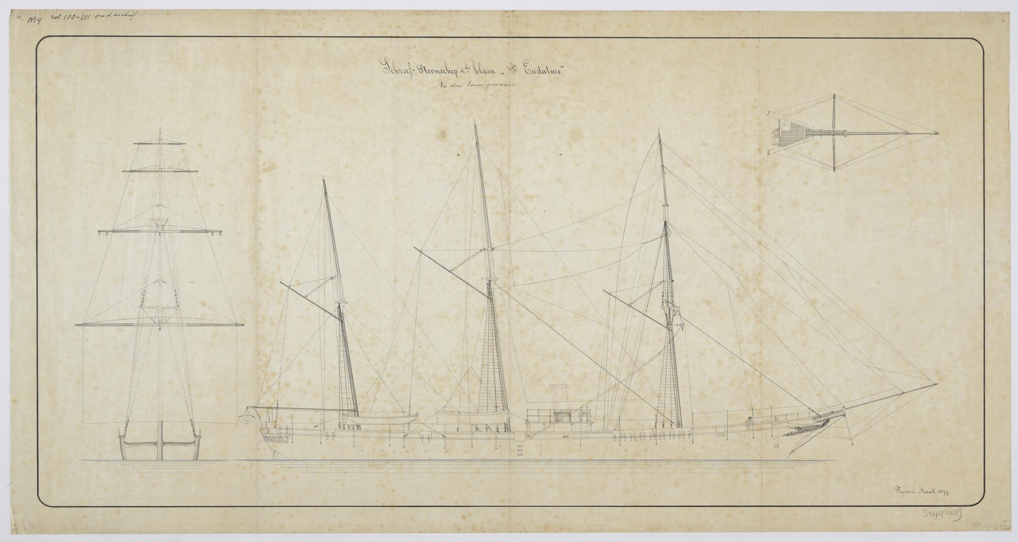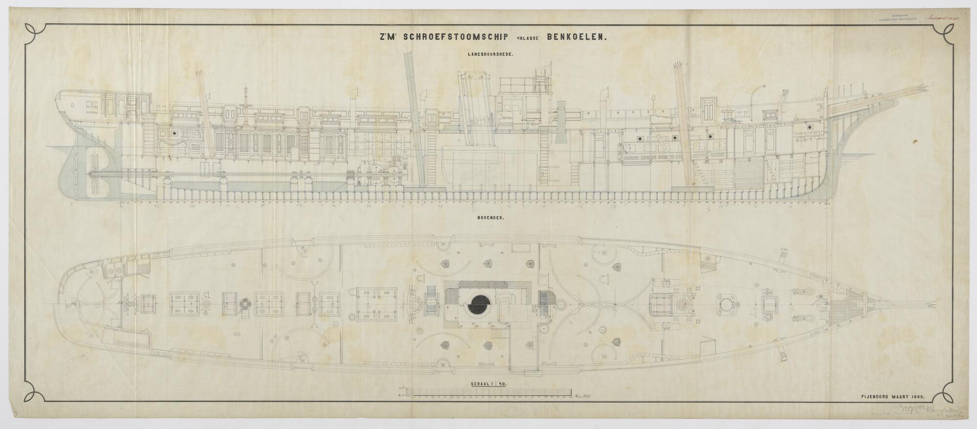 Langsscheepse doorsnede en bovenaanzicht van het bov...