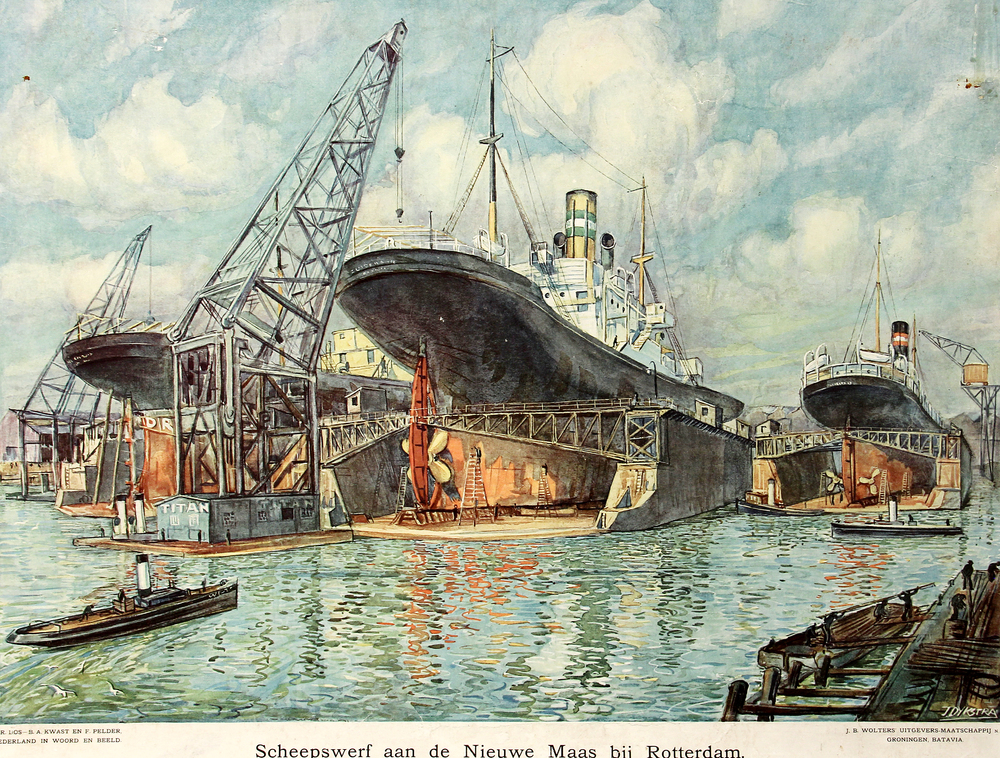 Scheepswerf aan de Nieuwe Maas bij Rotterdam