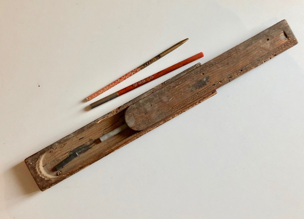 Houten griffeldoos met schuifdeksel