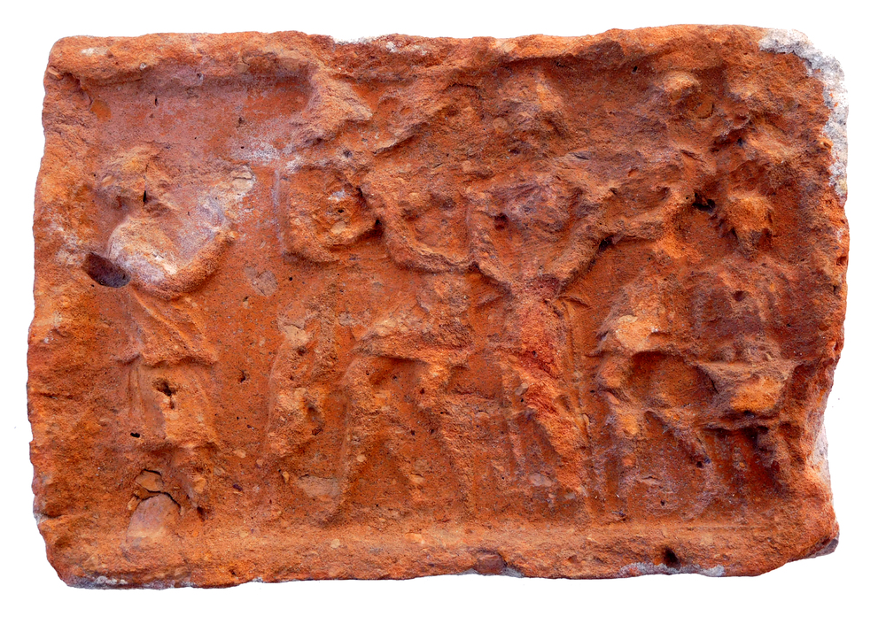 Siertegel met daarop het wapen van Nijkerk en vier o...