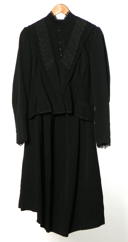 Jak en rok van zwarte stof met een werkje erin