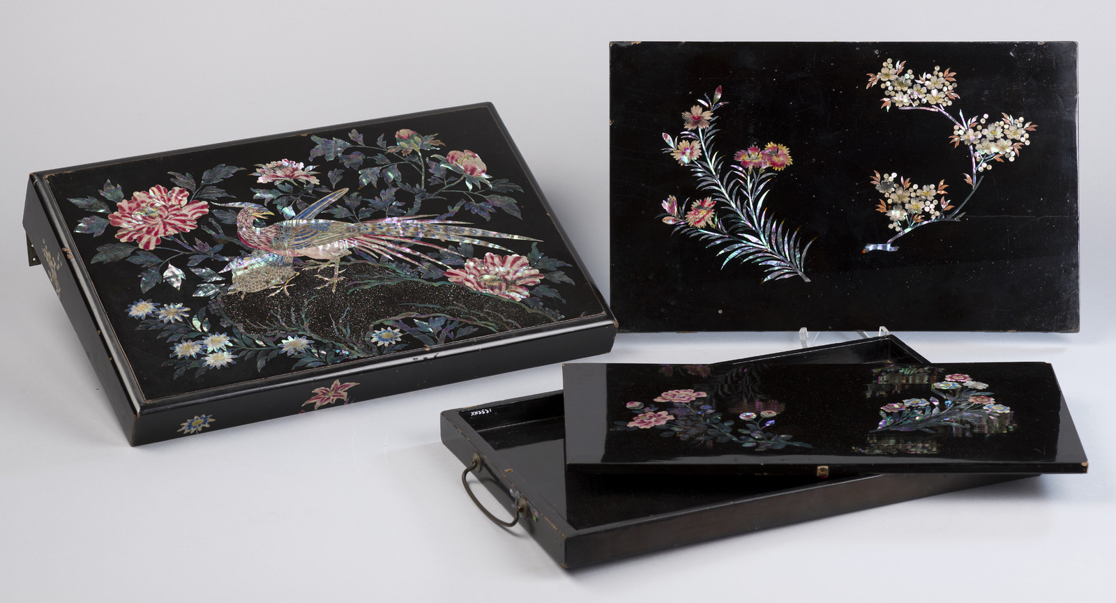 Schrijfcassette van zwart lakwerk met parelmoer inleg