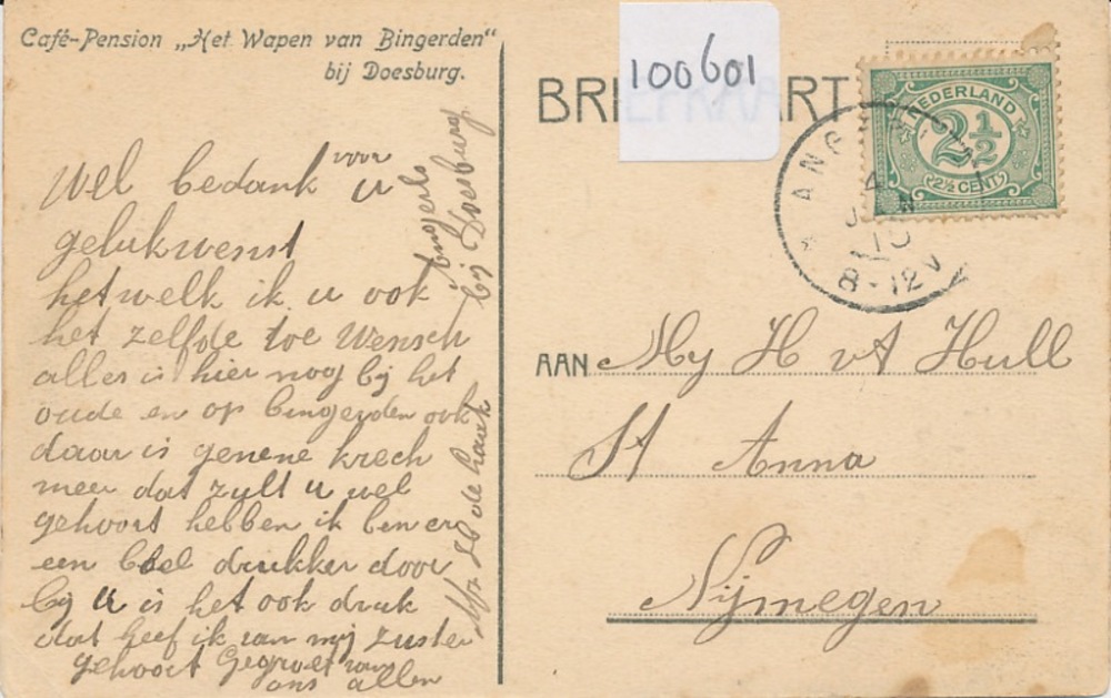 Ansichtkaart café H.W. van Uum te Zevenaar