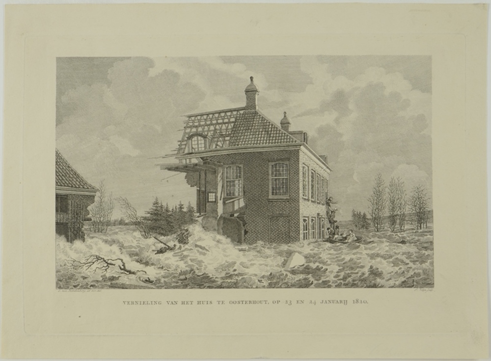 Half ingestort Huis te Oosterhout tijdens de dijkdoo...