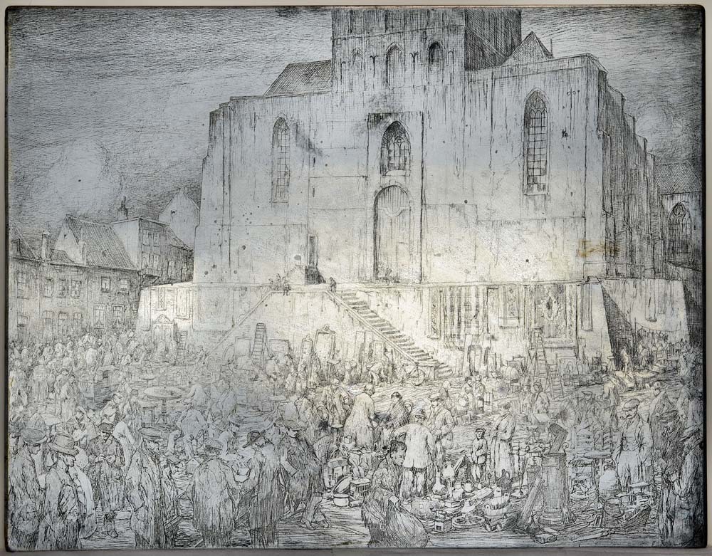 Drukplaat voor de ets Luizenmarkt voor de westgevel ...