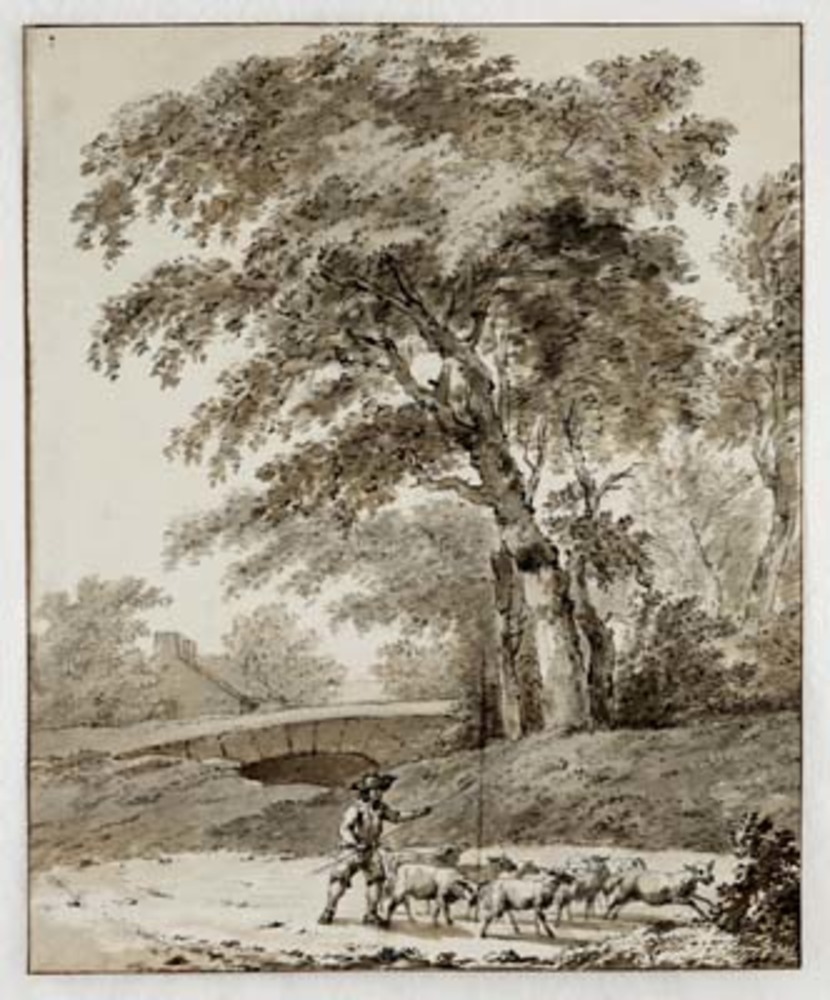Herder met kudde op een landweg