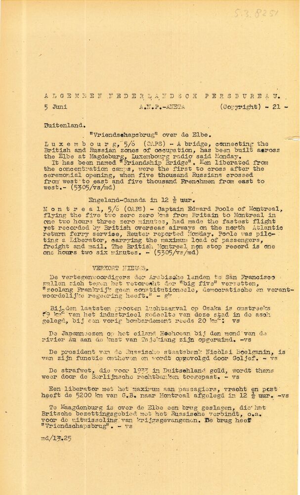 Vel: Algemeen Nederlandsch Persbureau, mededelingen,...