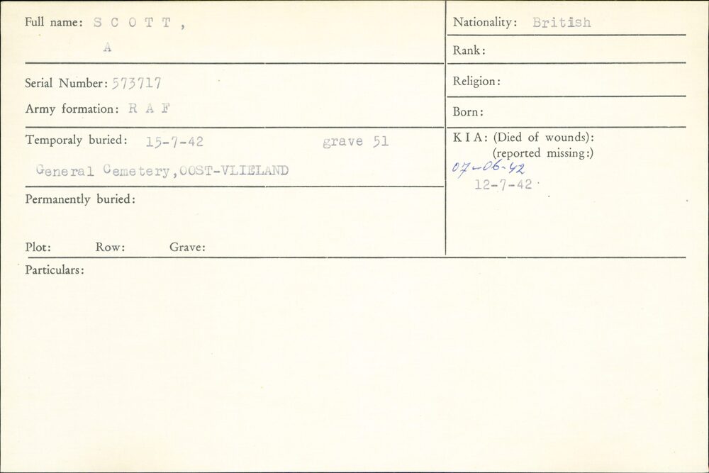 Oorlogsgraven comité kaarten Oost Vlieland