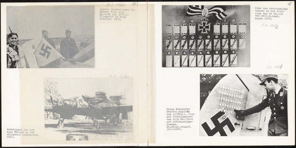 Foto van overwinningssymbolen op richtingsroer Me 11...