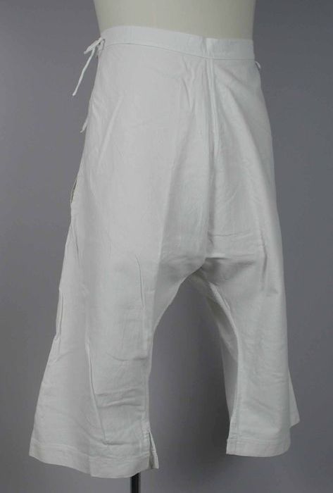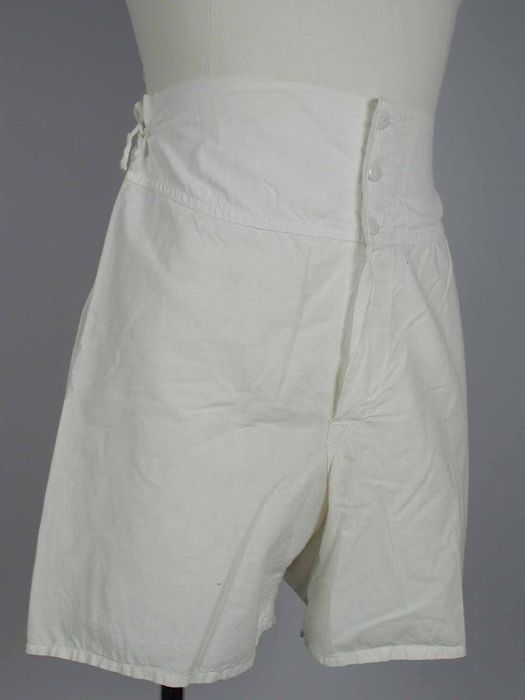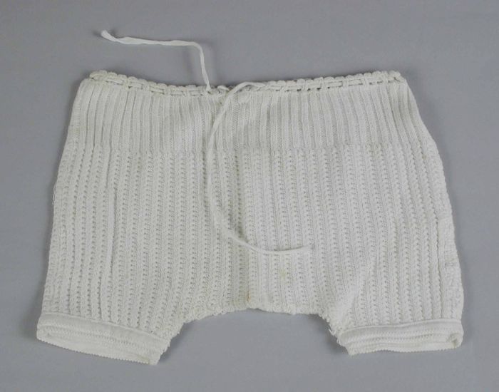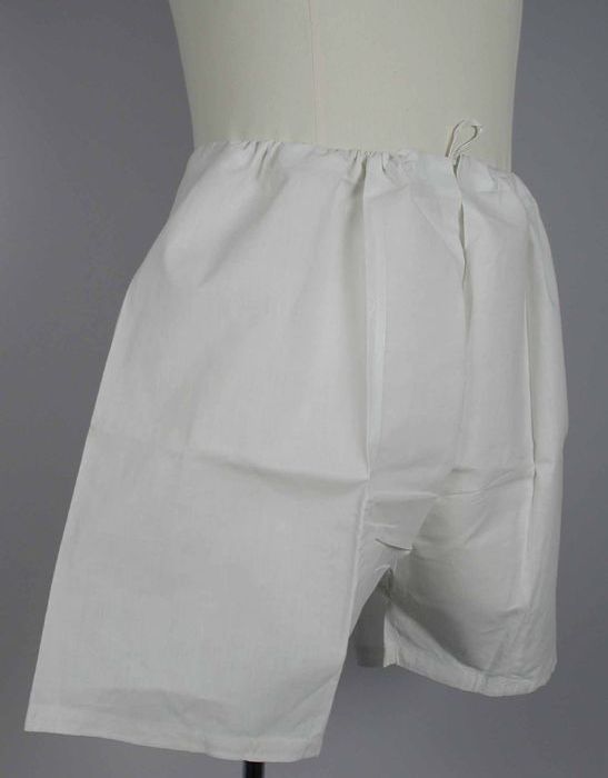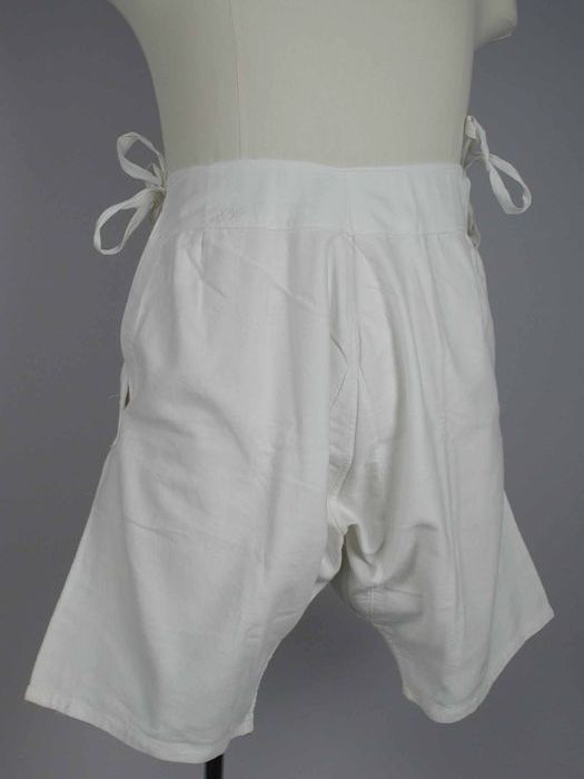 Wijde onderbroek van stevig wit keperkatoen, strikba...