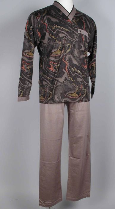 Tweedelige pyjama, hemd met bruin-zwart marmer dessi...
