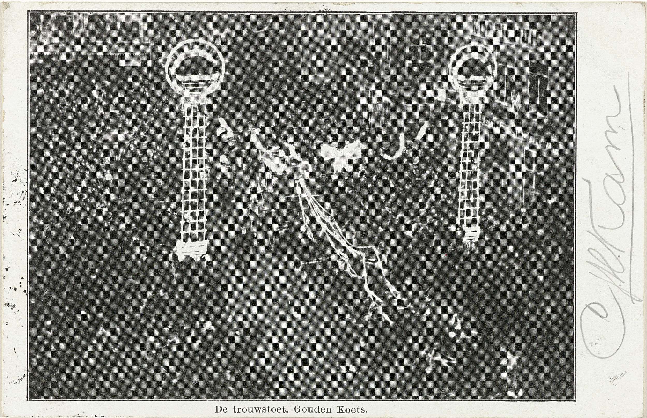 De gouden koets van de huwelijksstoet van Wilhelmina...