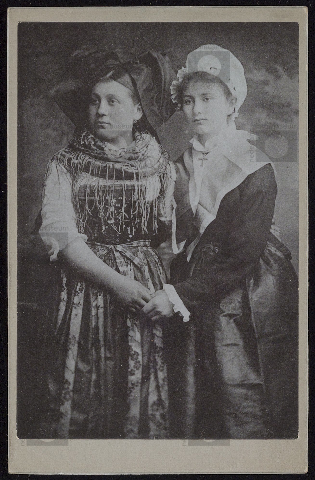 Twee meisjes in klederdracht uit de Elzas, Frankrijk...
