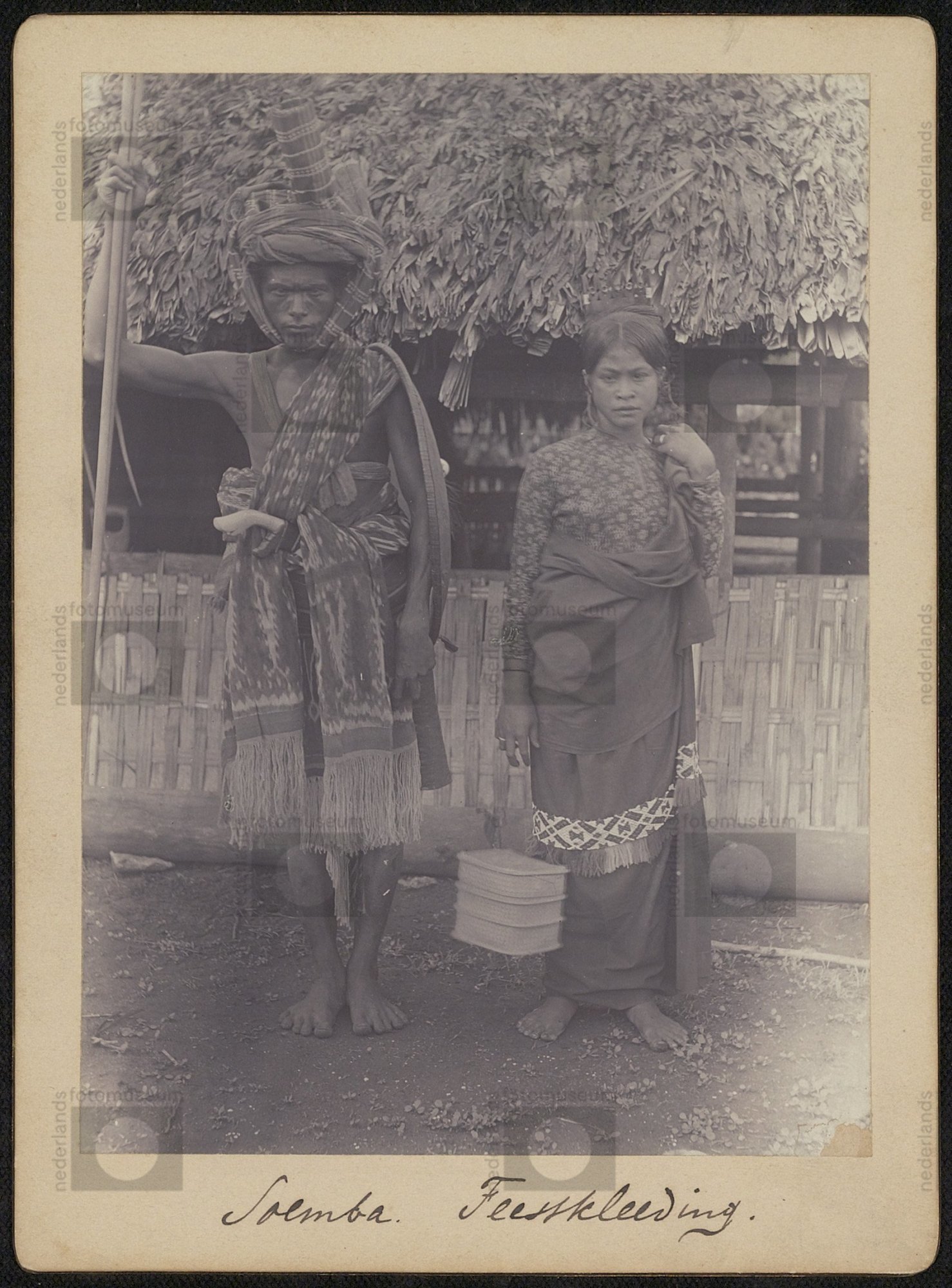 Man en vrouw in feestkleding, Sumba, Indonesië (1880...