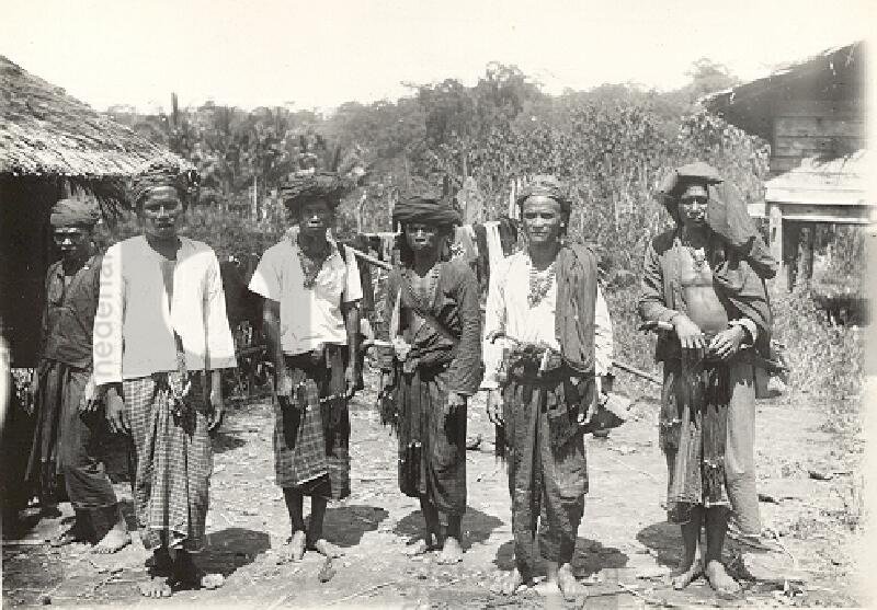 Batak Pakpak mannen met kettingen en zwaarden, Sumat...