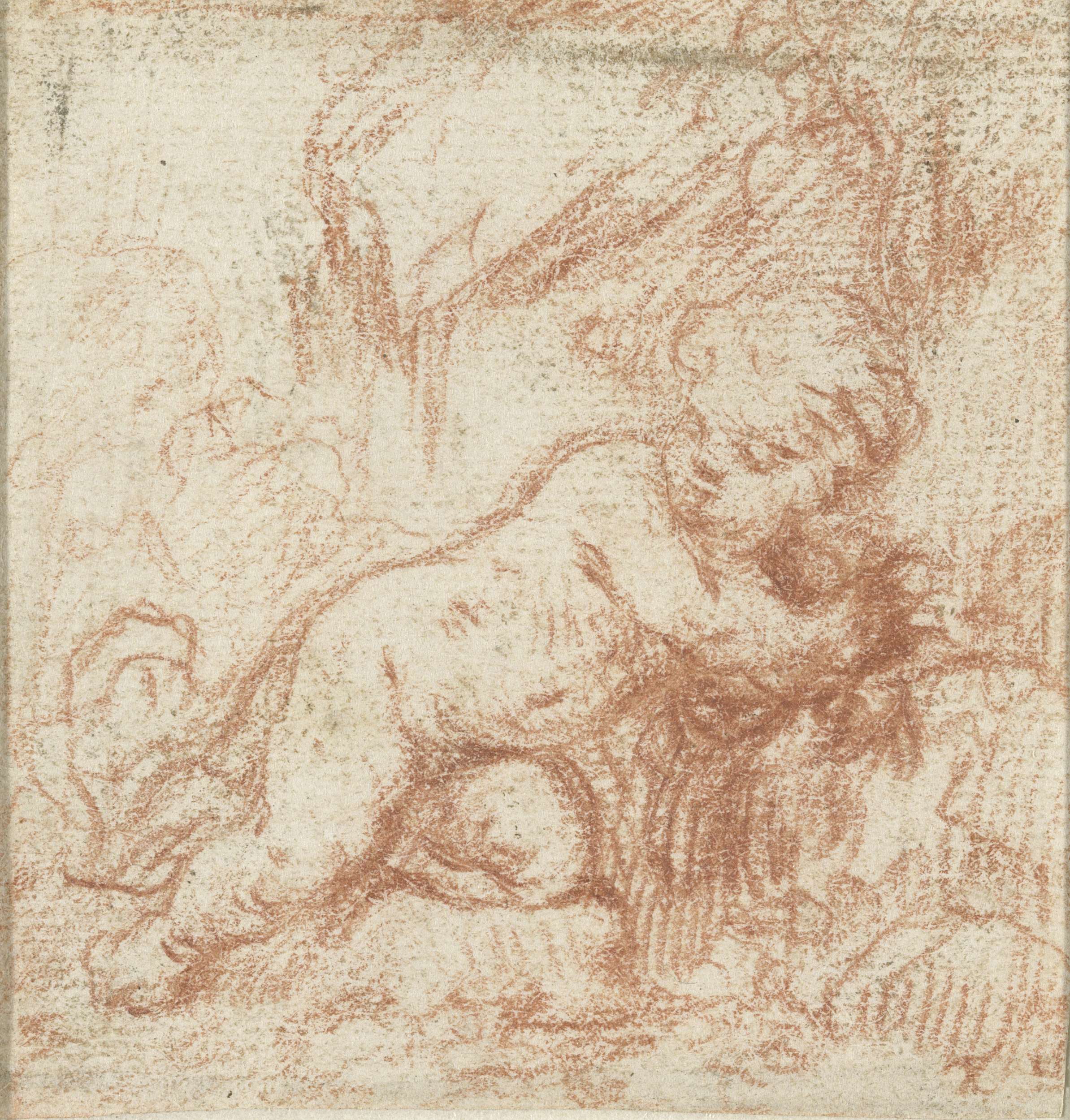Putti, bezig een vuurtje te maken