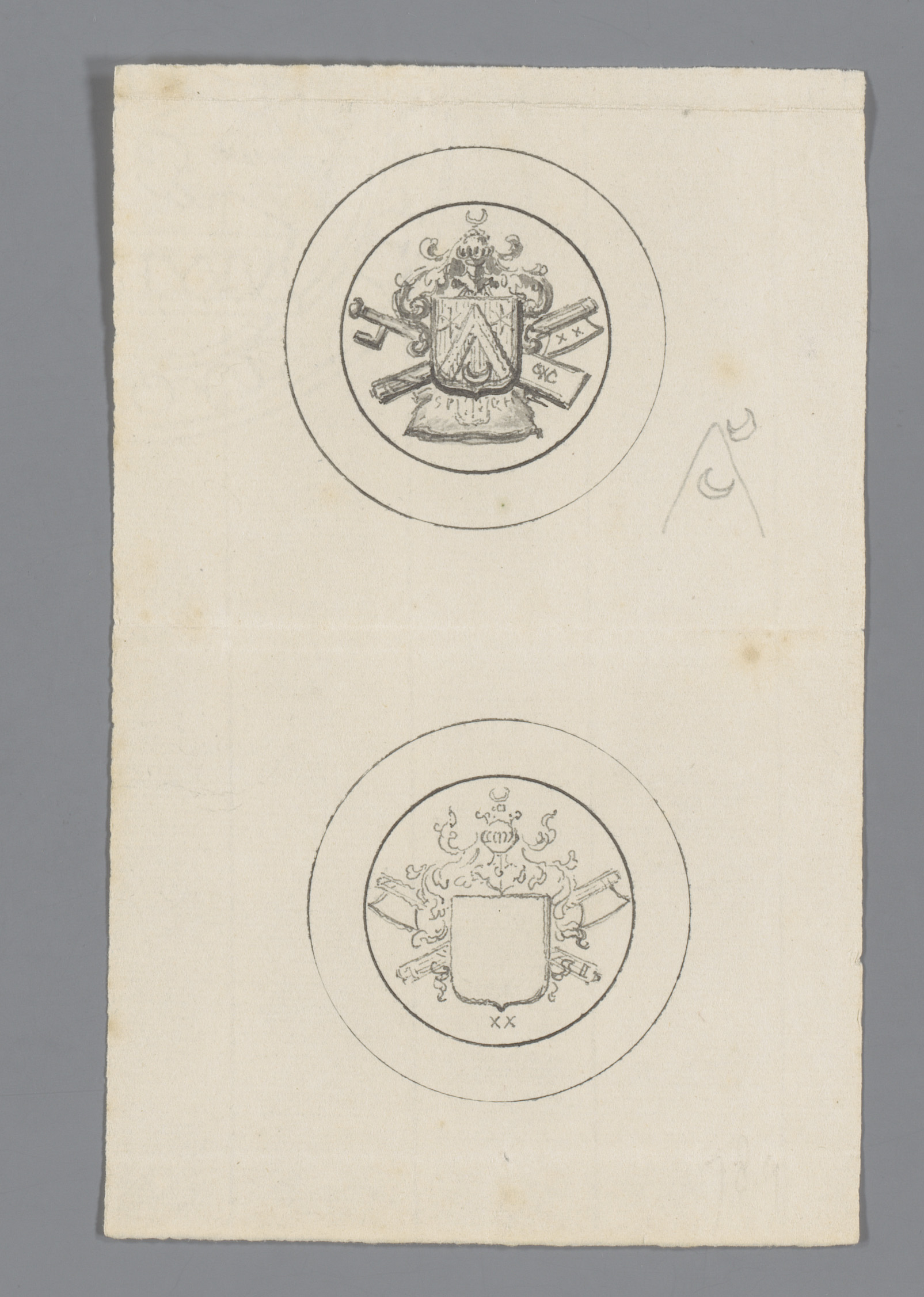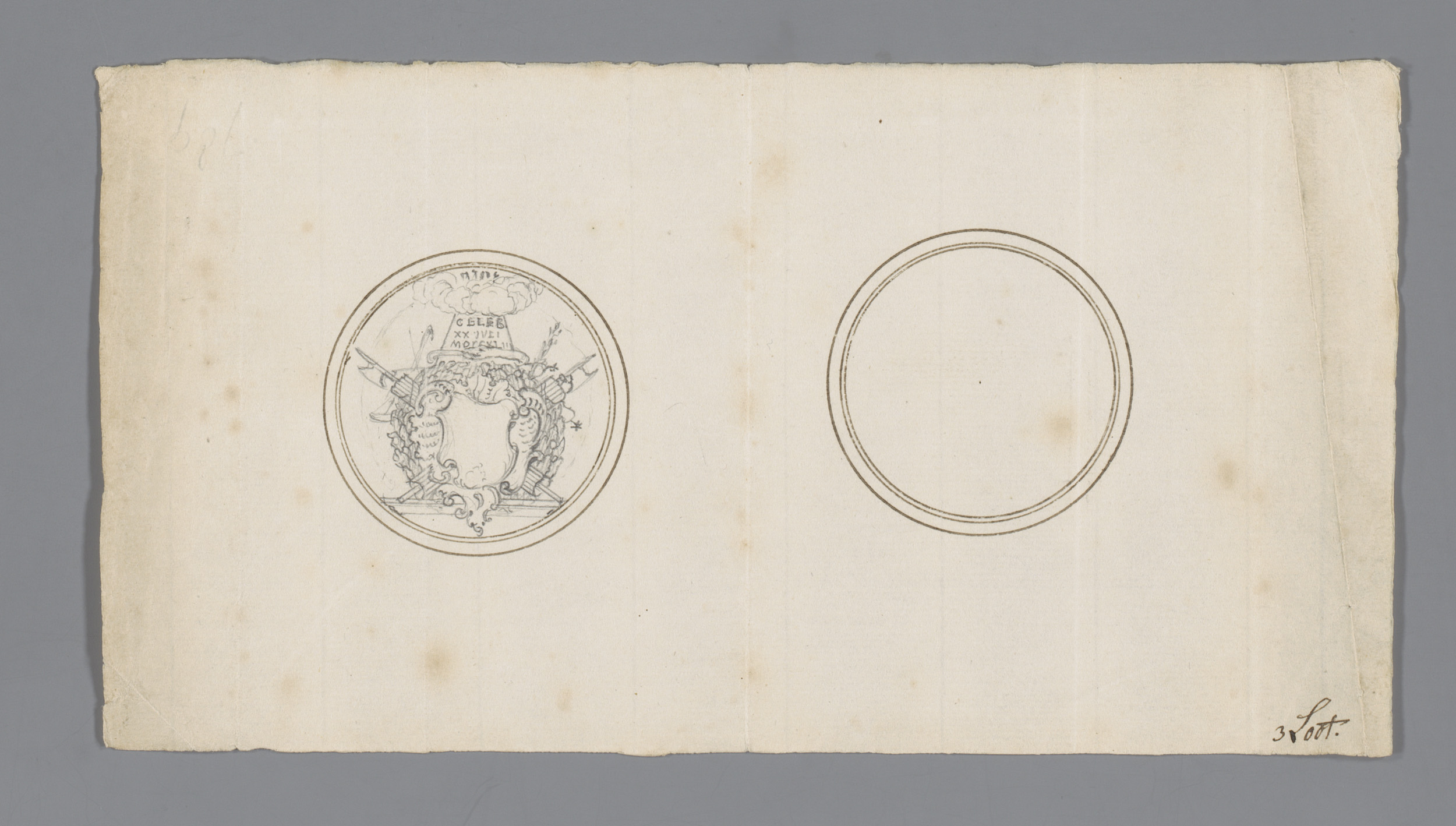 Ontwerp voor een historiepenning met wapenschild en ...