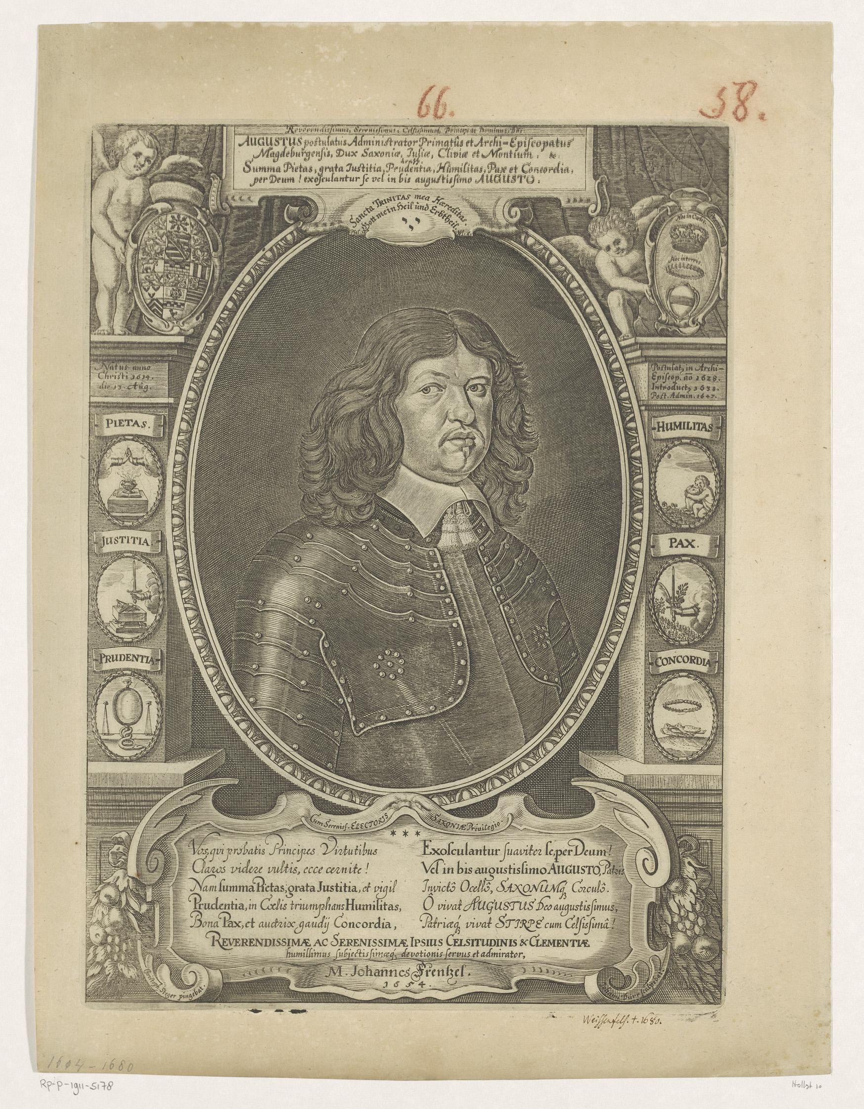 Portret van Frederik de Grote in allegorische omlijs...