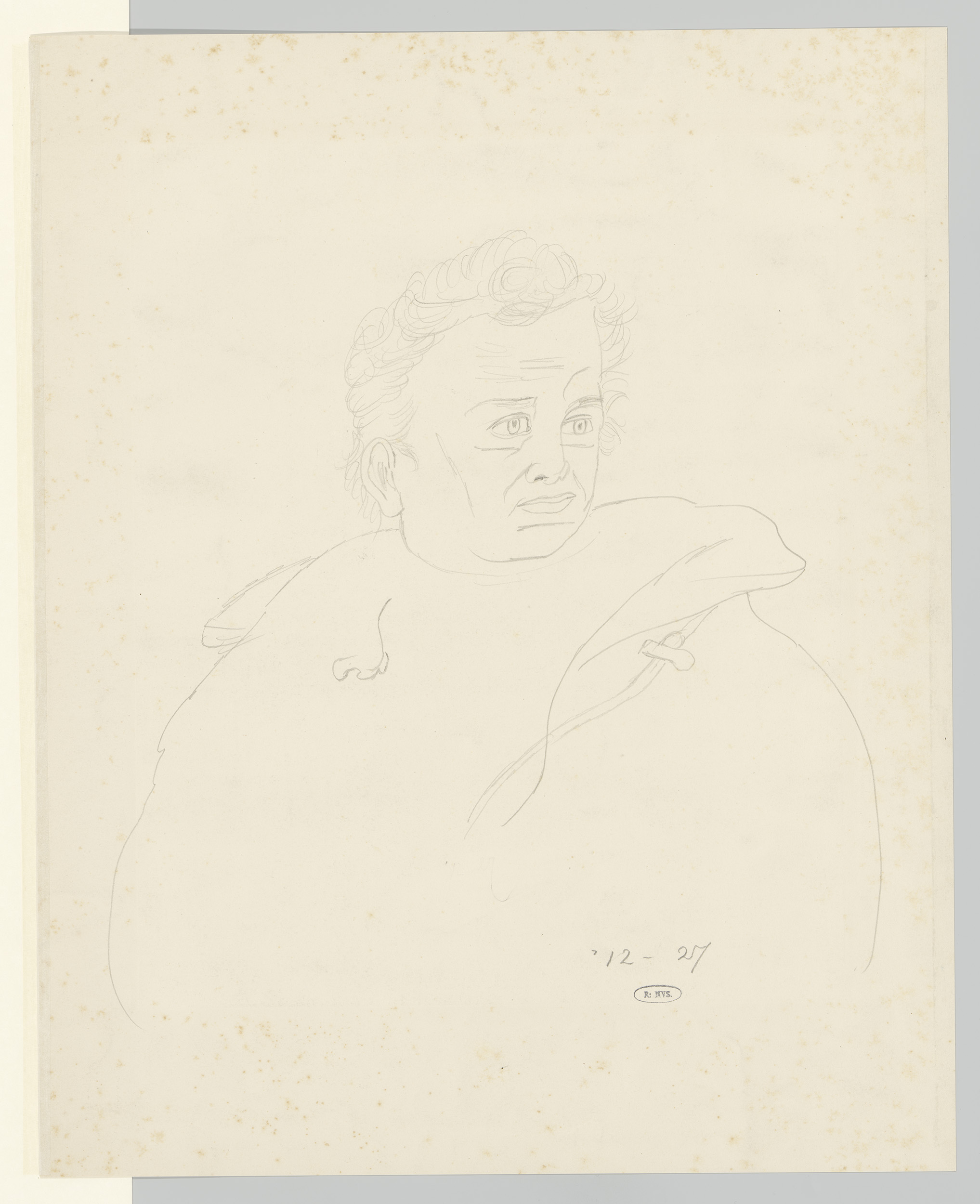 Vrouwelijke halffiguur met muts en cape