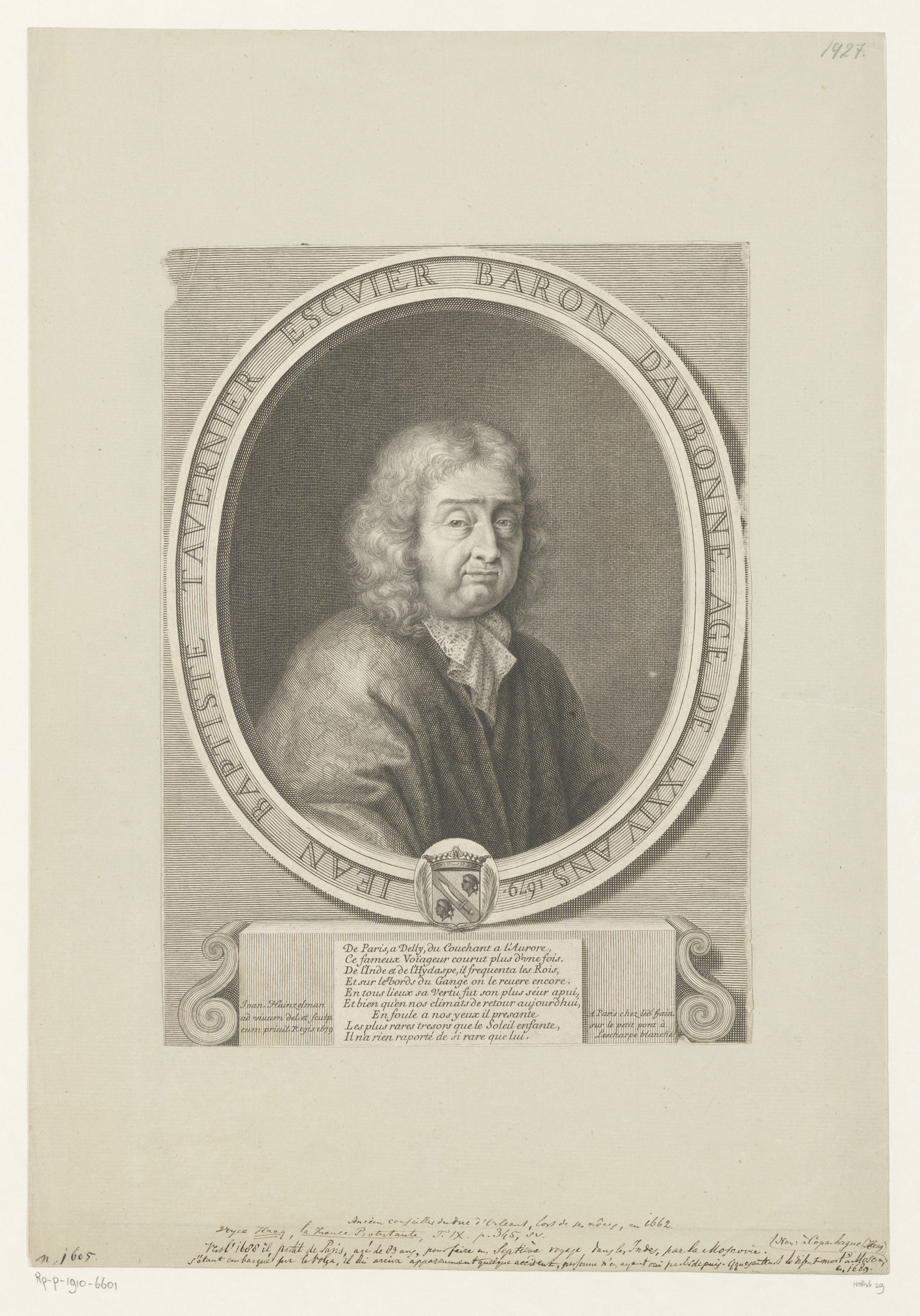 Portret van Jean-Baptiste Tavernier op 74-jarige lee...