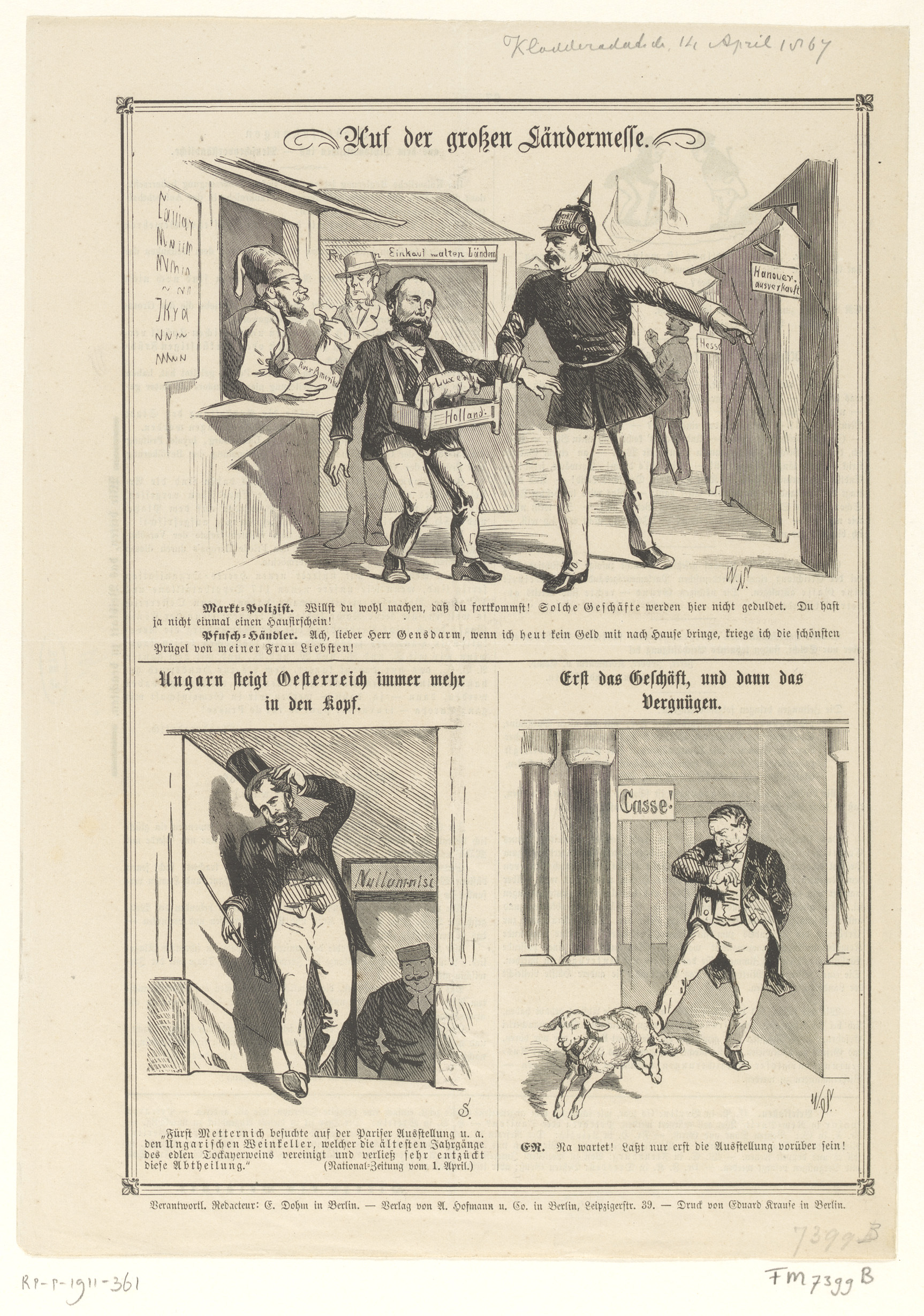 Spotprent op koning Willem III en de Luxemburgse kwe...