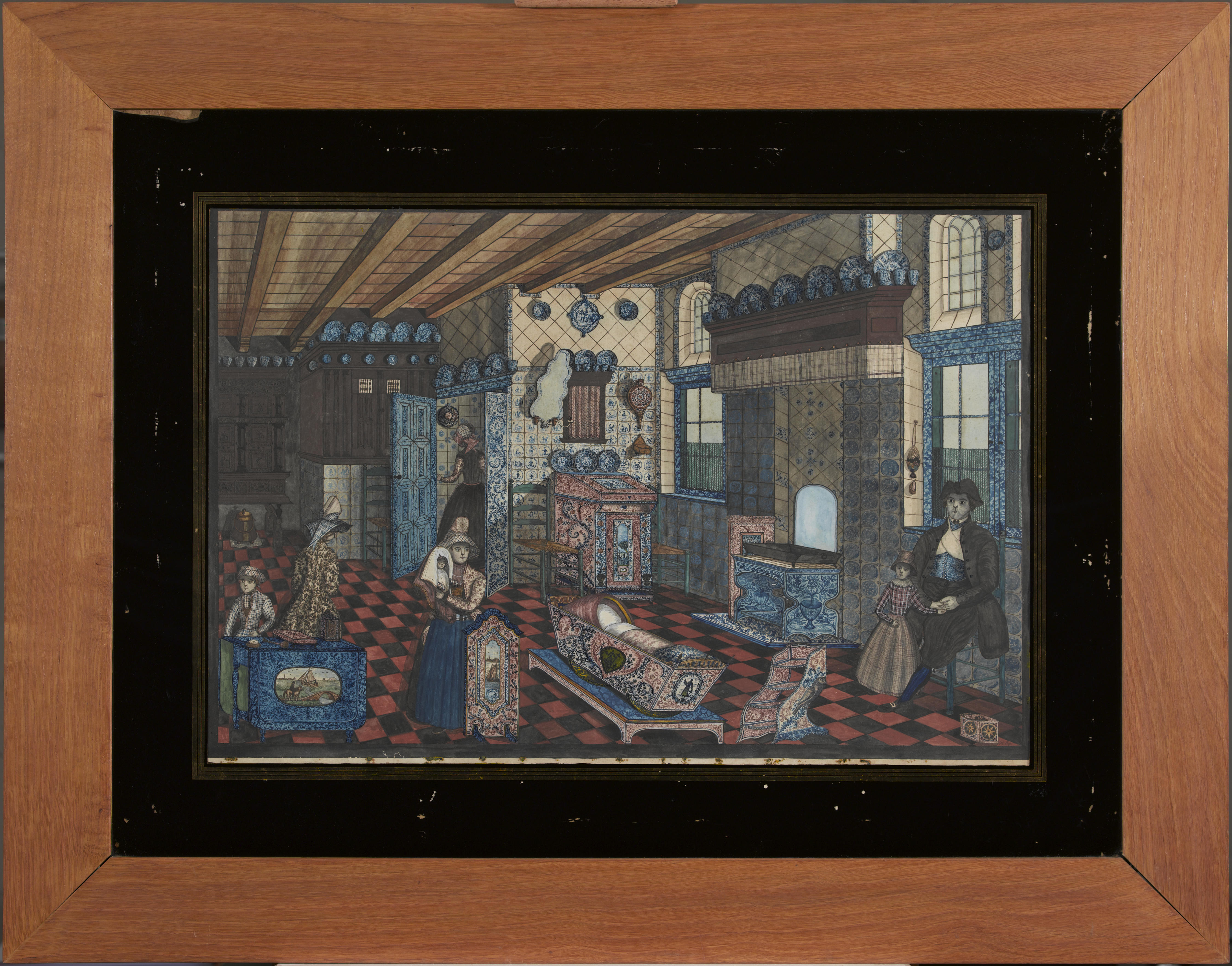 Hindeloopers in Hindelooper interieur, circa 1850