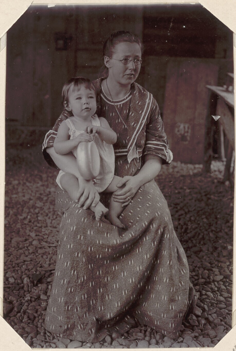 Mevrouw Versteeg met een kleuter op schoot, 1910