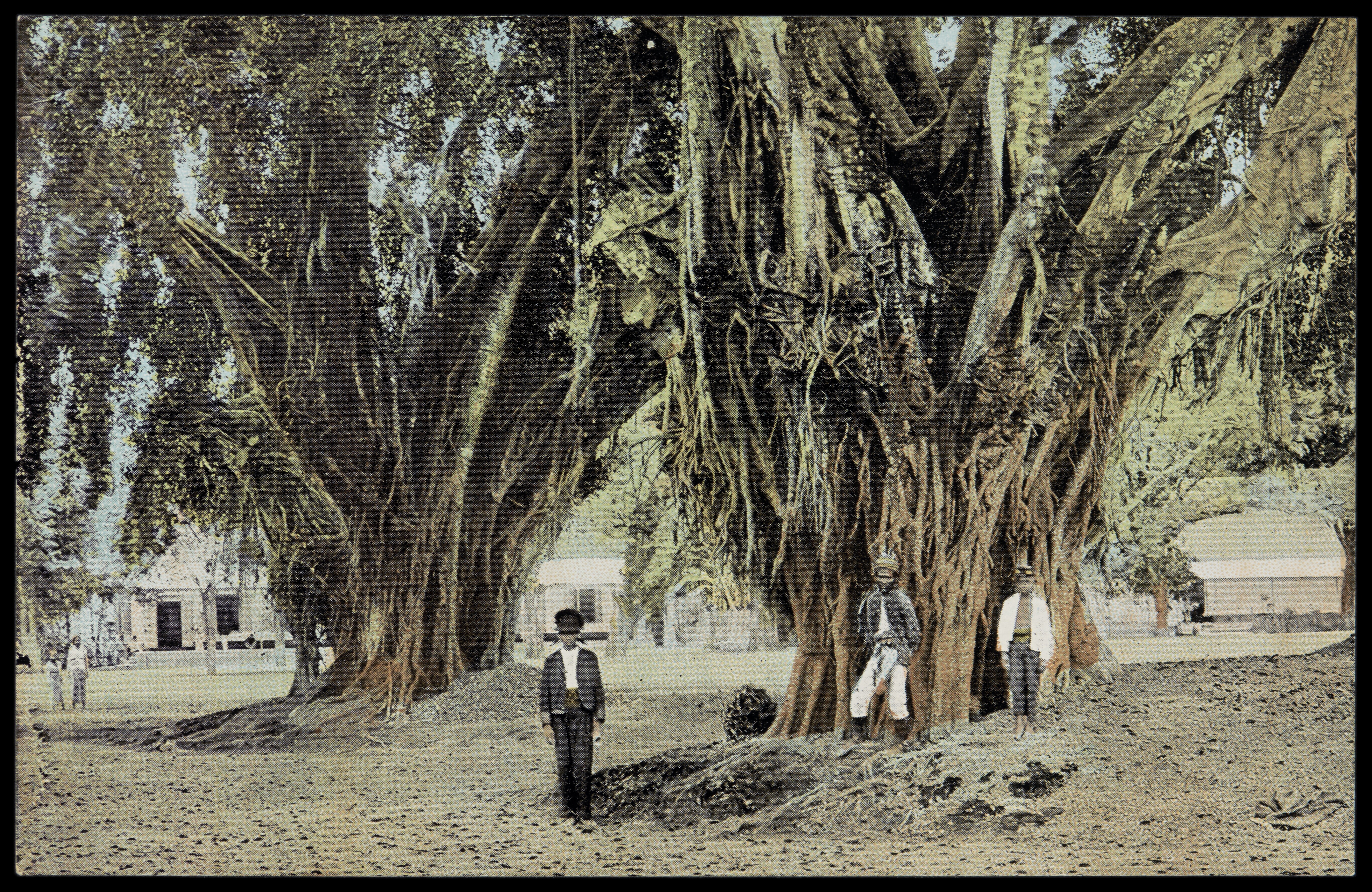 Jongens bij waringinbomen