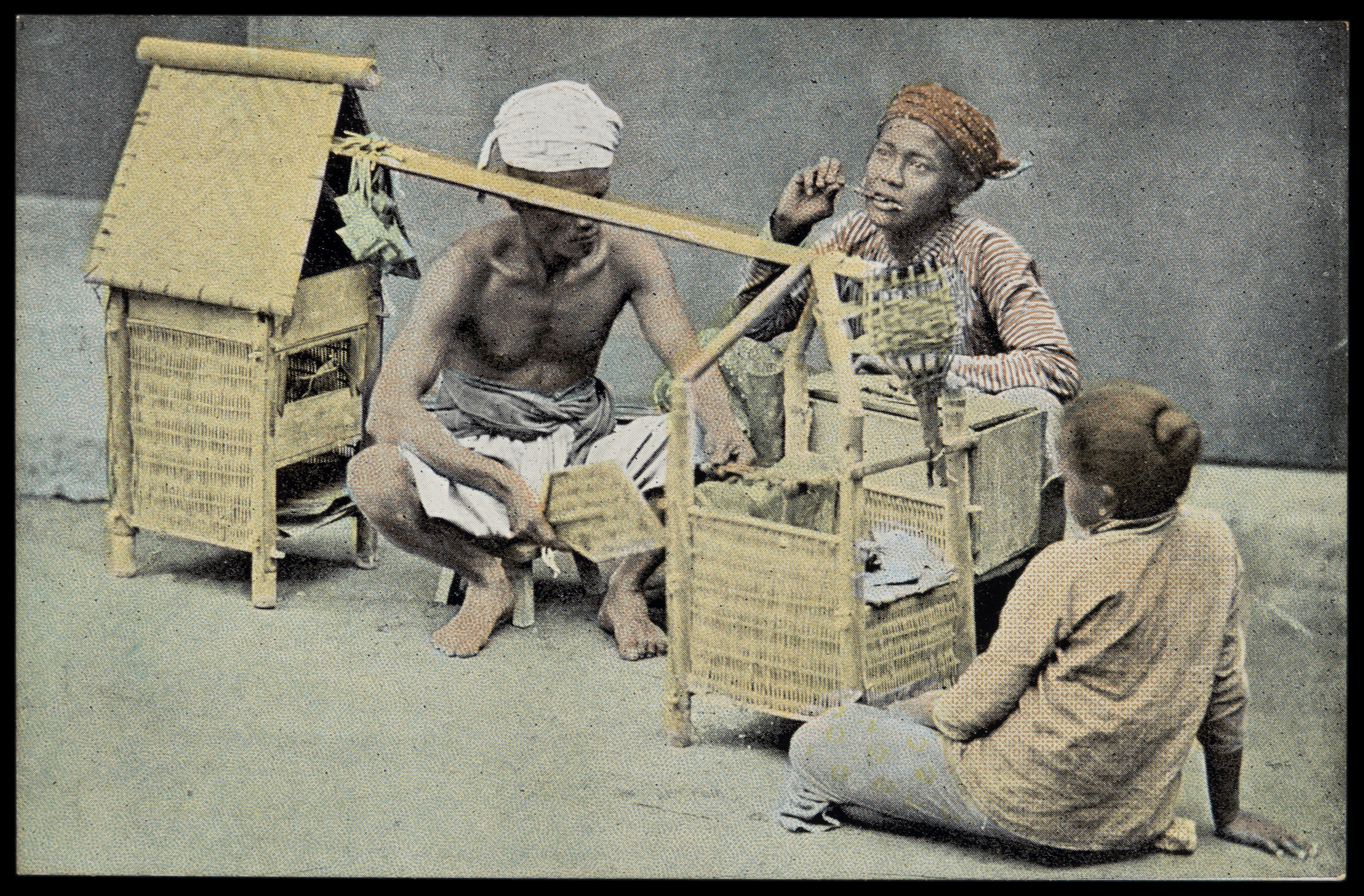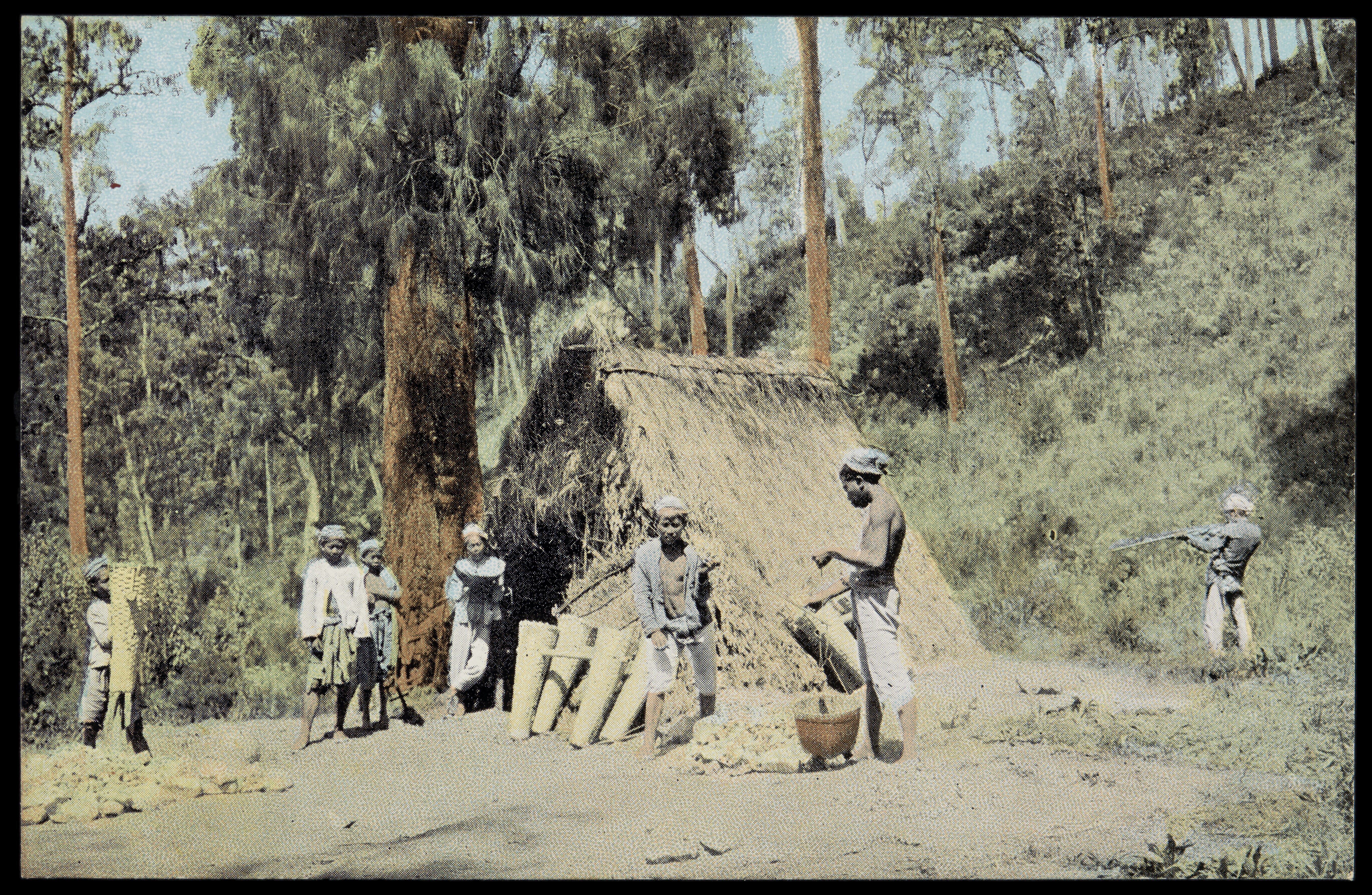 Javanen rond een hut of jachthuisje op de berg Goeno...