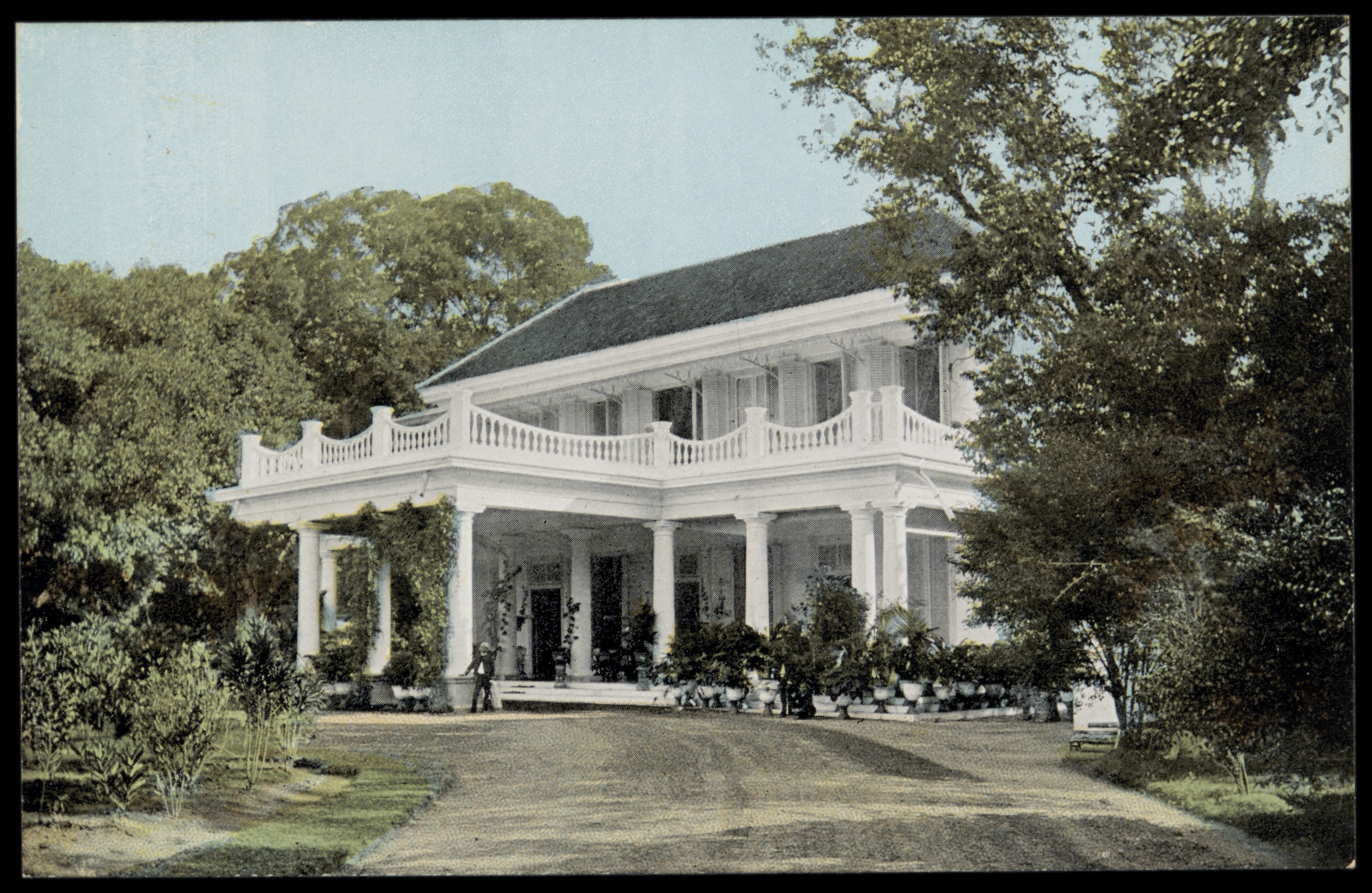 Oprijlaan met woning van de resident te Soerabaia op...
