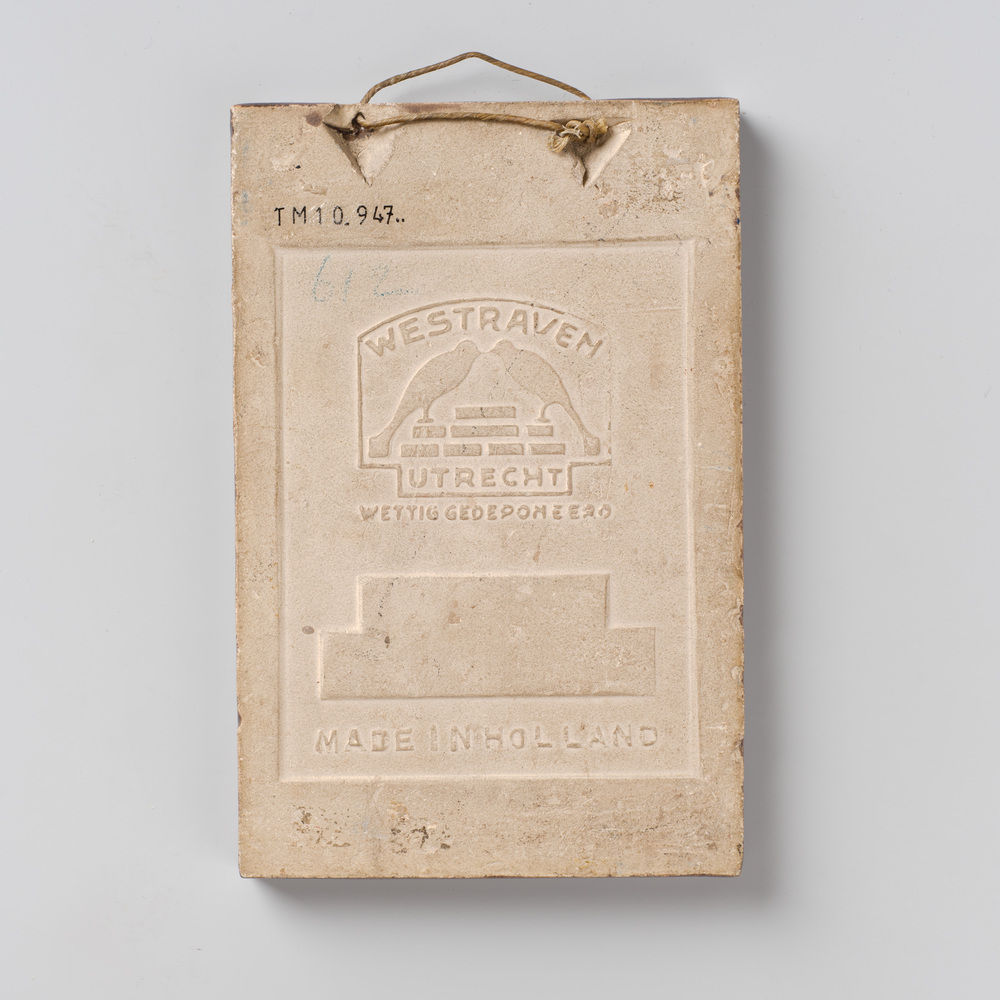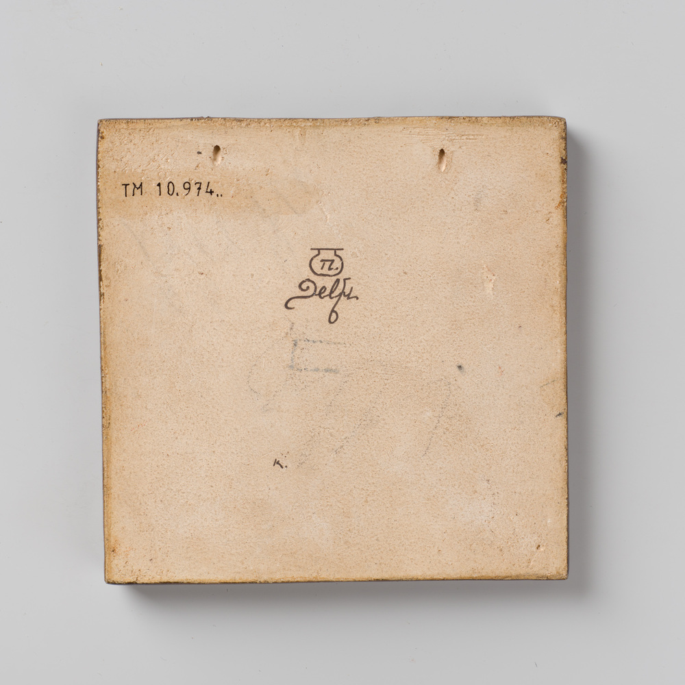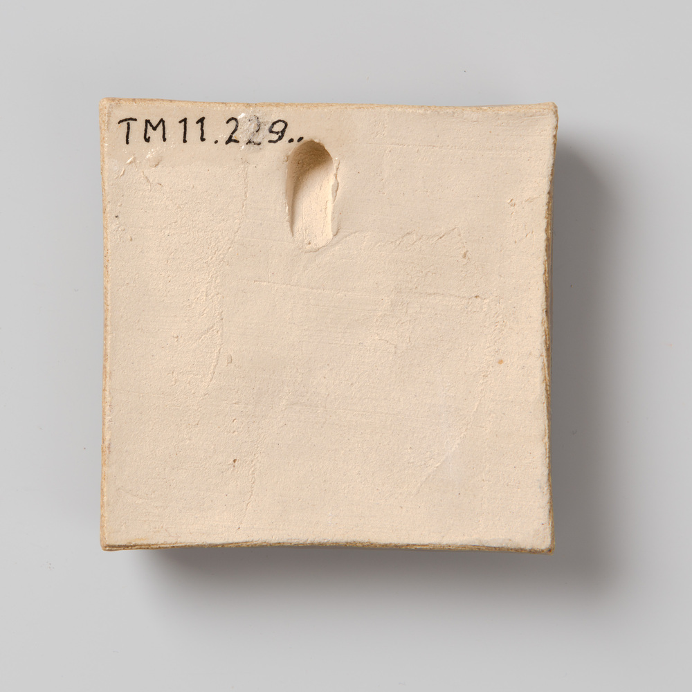 Tegel van keramiek met tinglazuur, voorstellende: st...