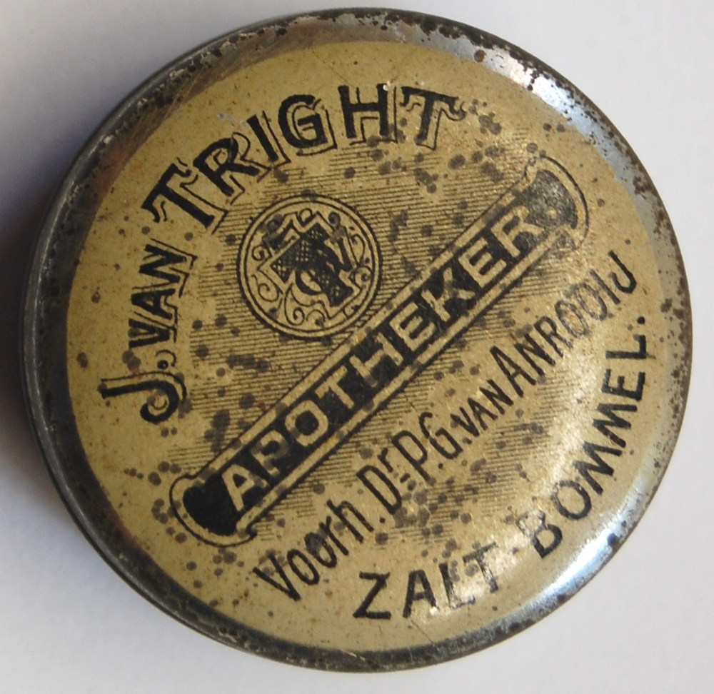 pillendoos. Rond blikken doosje en deksel met opschr...