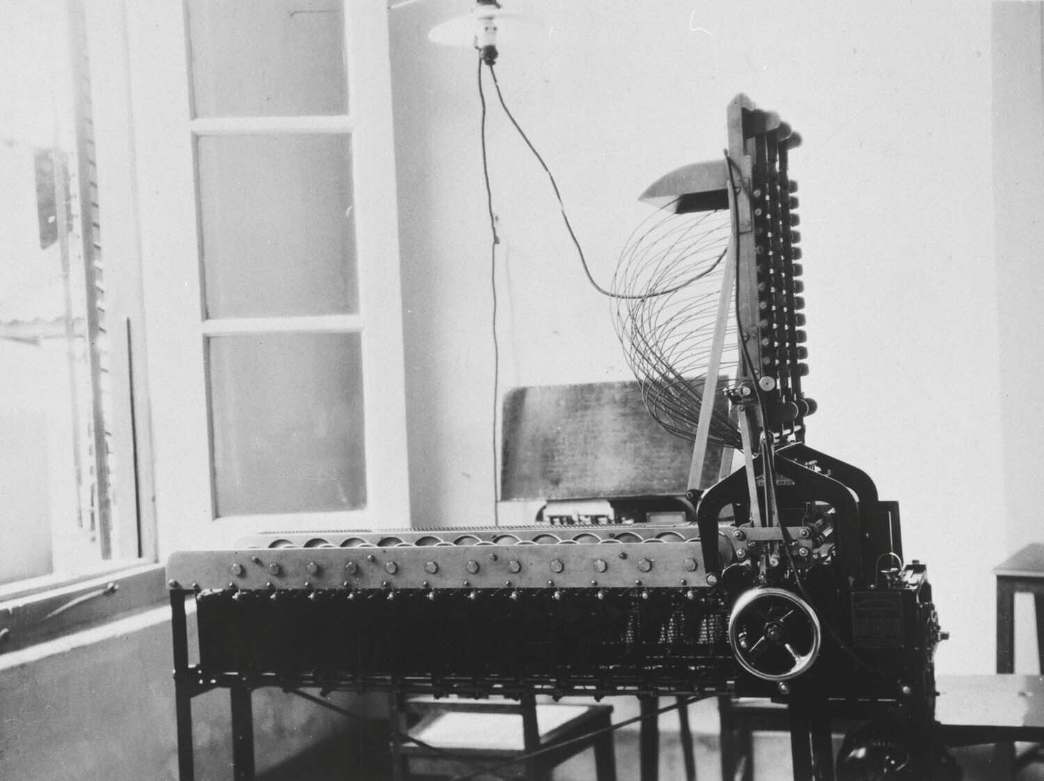 Tel- en sorteermachine voor de eerste volkstelling i...