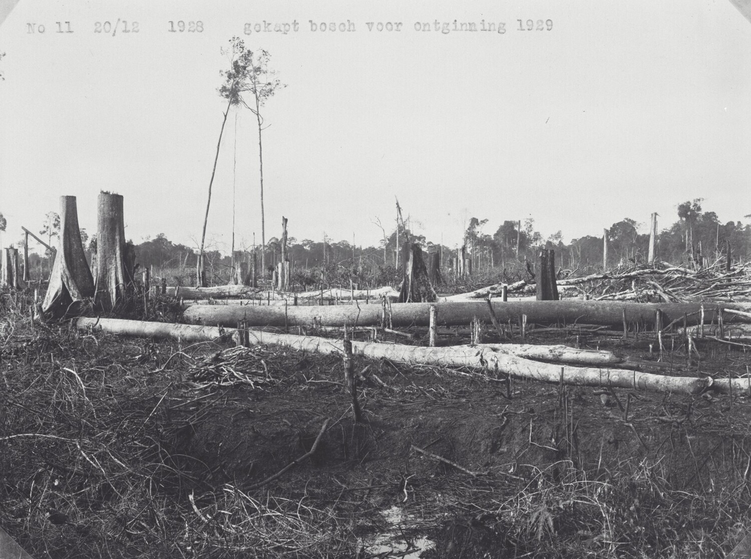 Gekapt bos voor ontginning van oliepalmonderneming N...