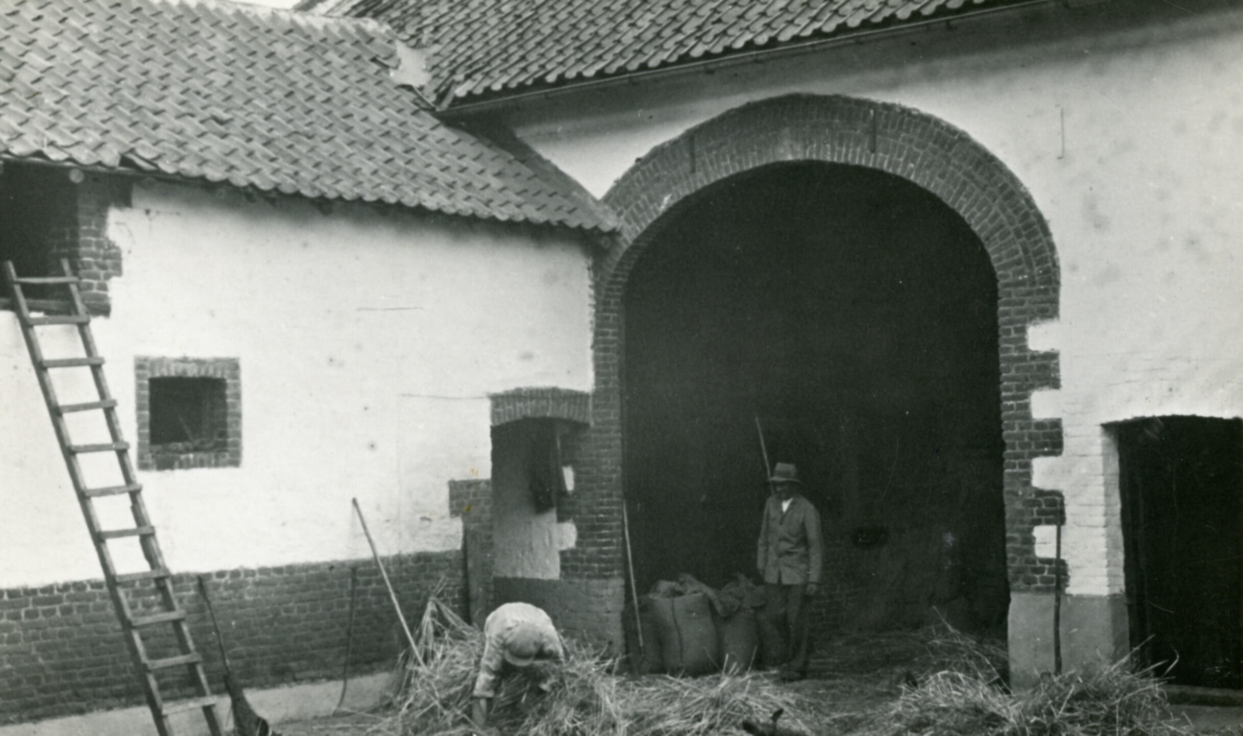 Binnenplaats van een boerderij, Caberg, 1935 (zwart-...