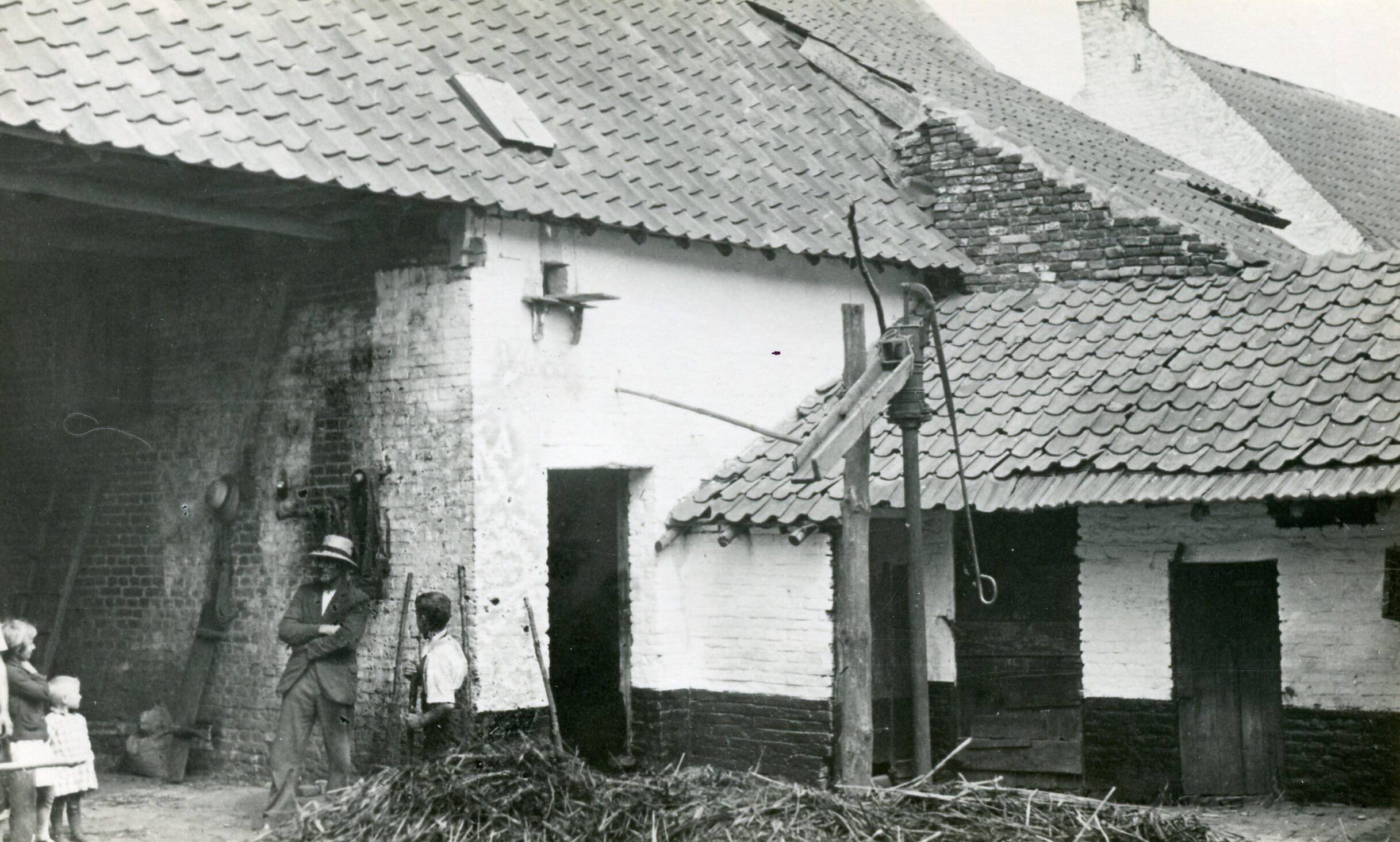 Binnenplaats van een boerderij, Amby, 1935 (zwart-wi...