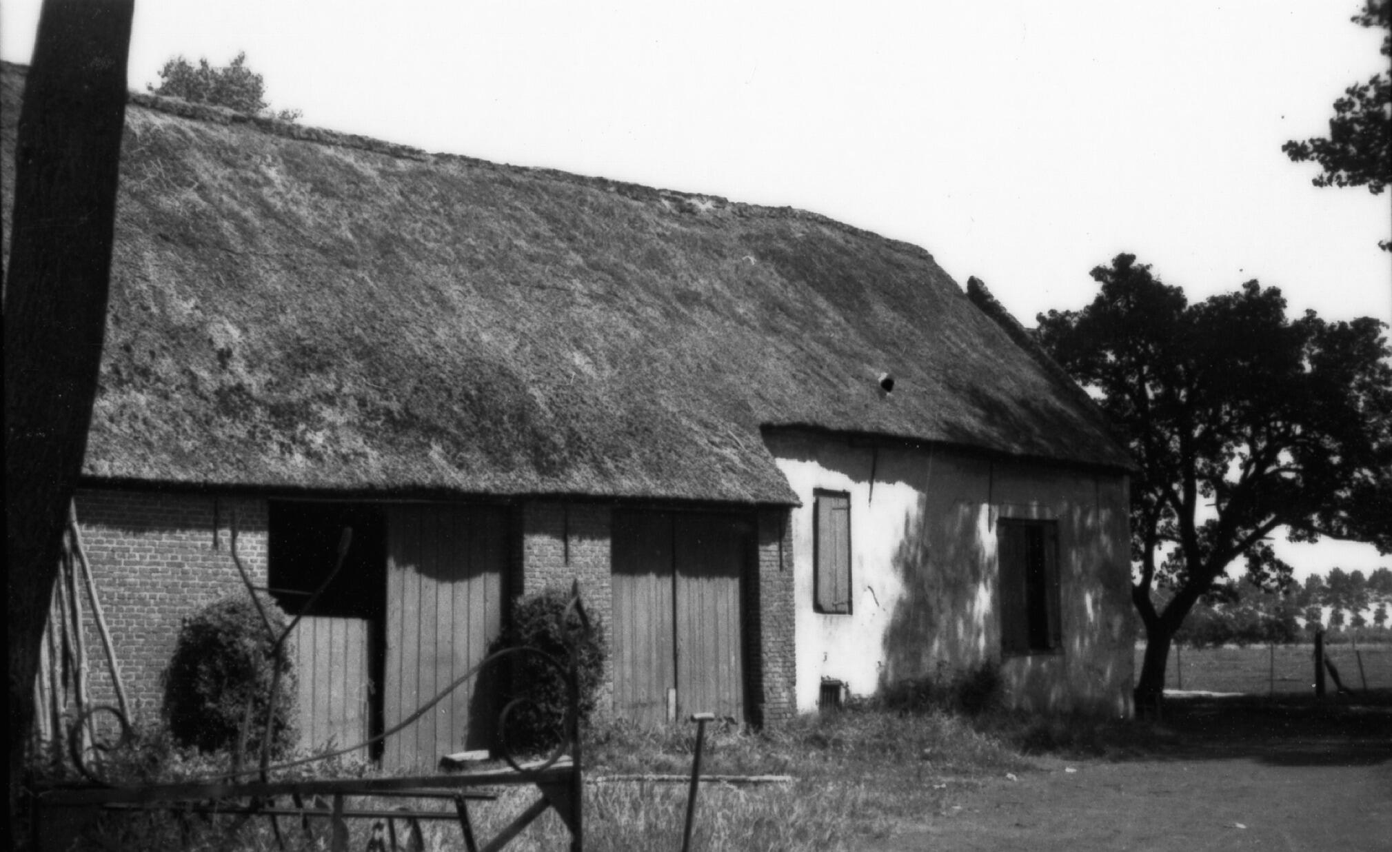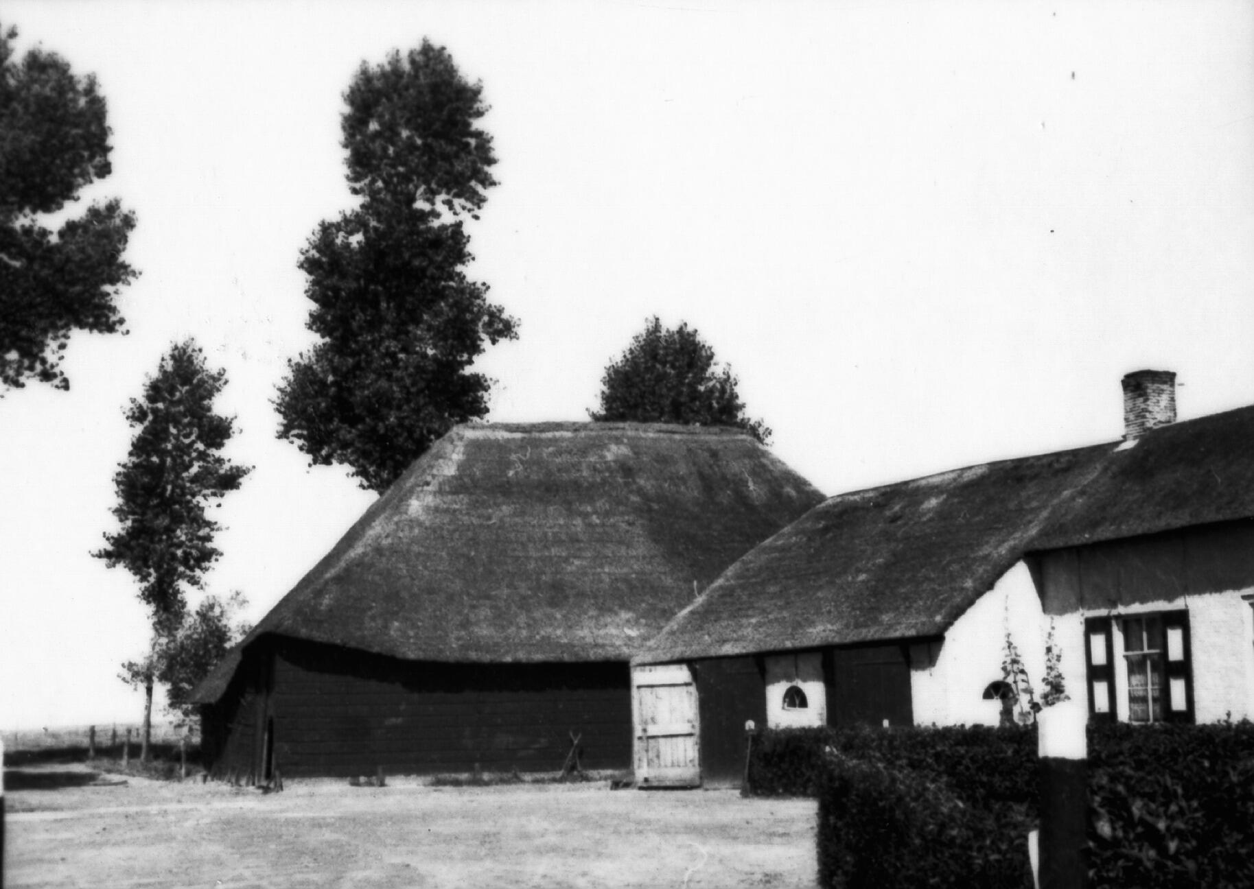 Boerderij en schuur, Moerstraten, 1937 (zwart-wit foto)