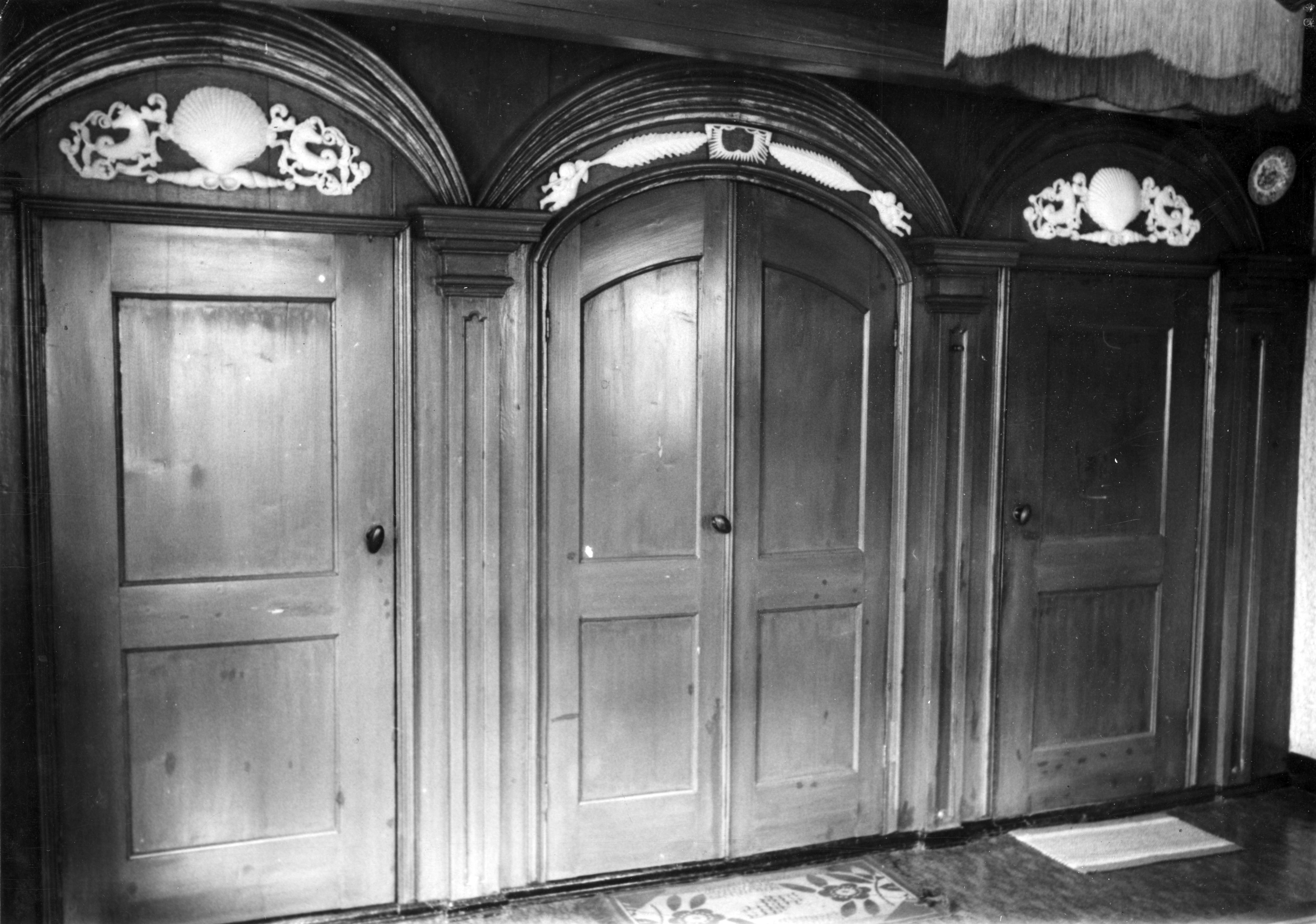 Detail van een wandbetimmering, Makkum, 1944 (zwart-...