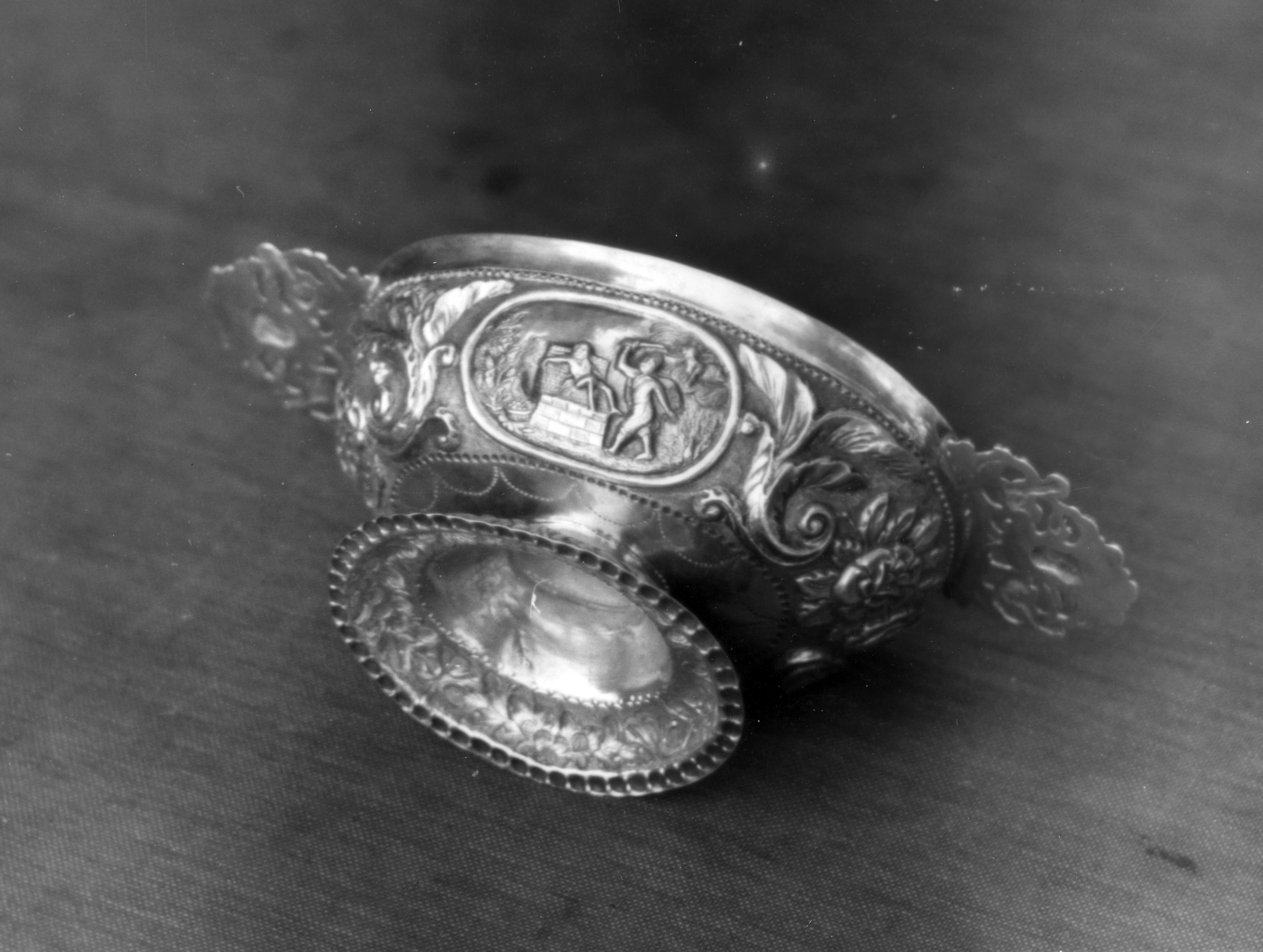 Zilveren brandewijnkom uit Molkwerum, 1944 (zwart-wi...