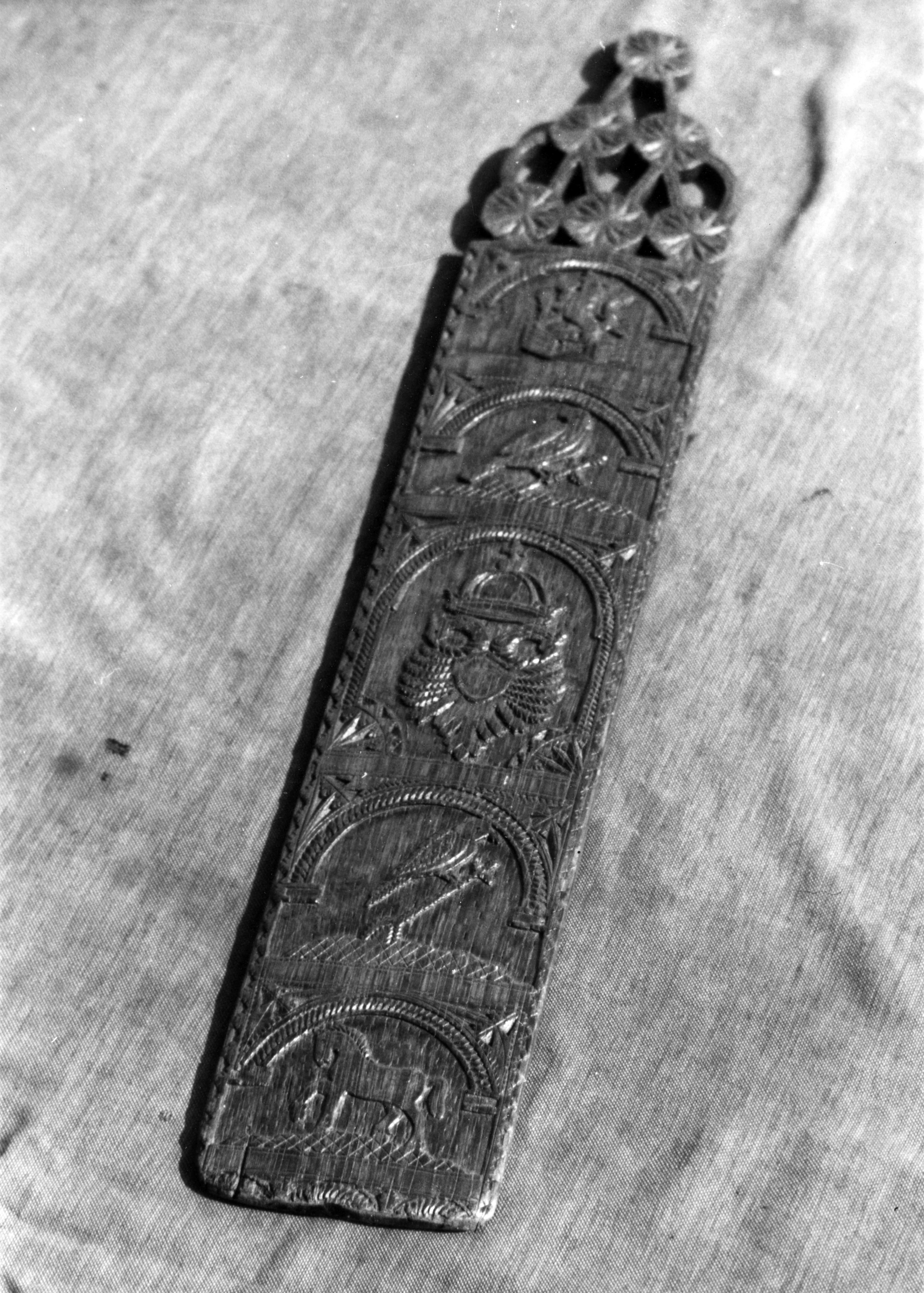 Mangelplank met houtsnijwerk uit Molkwerum, 1944 (zw...