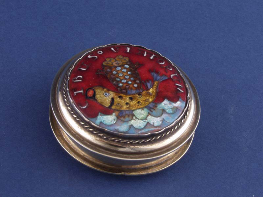 Een pyxide en een houder voor een heilig olieselhoud...