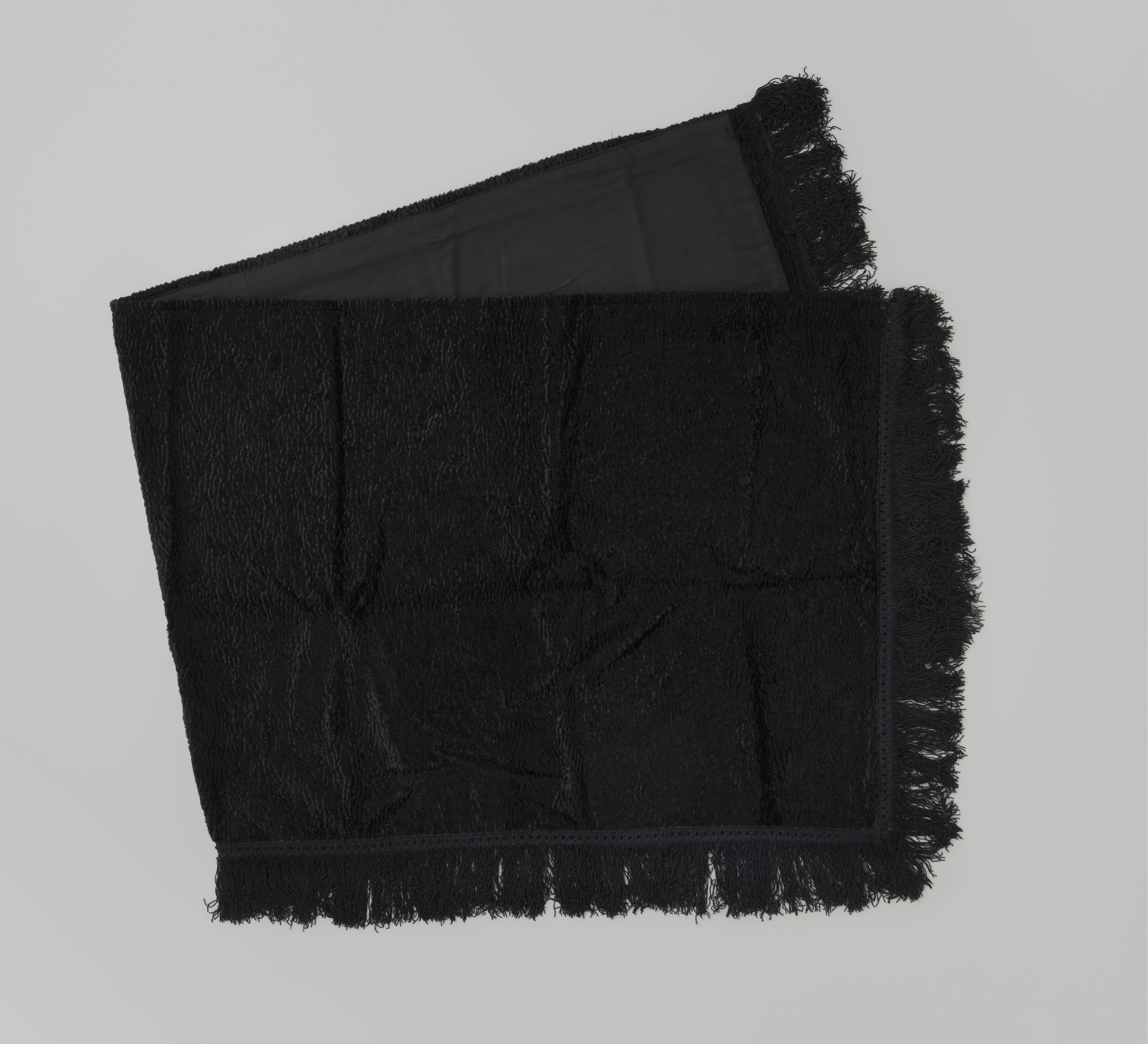 Zwart pluche omslagdoek, Zuid-Beveland, circa 1960