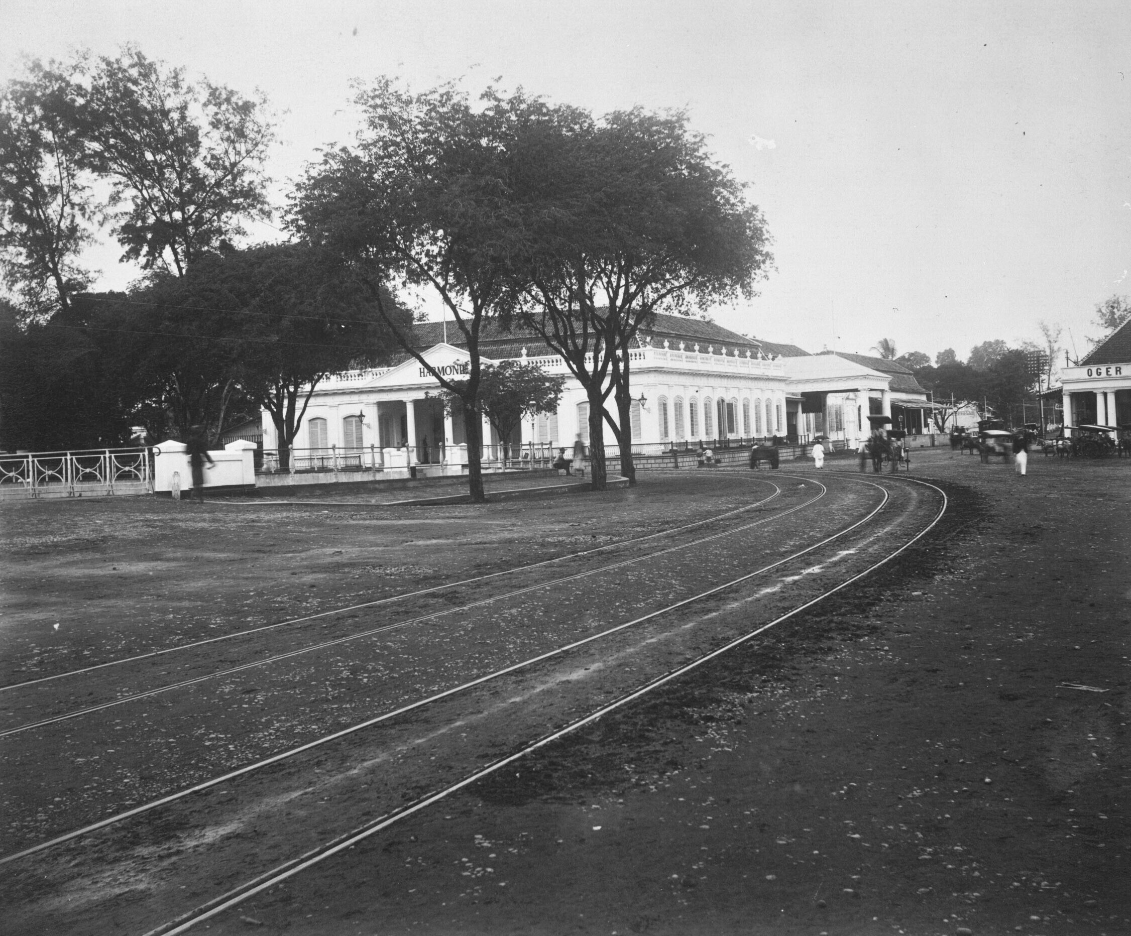 Gezicht op de sociëteit Harmonie en de winkel van Og...