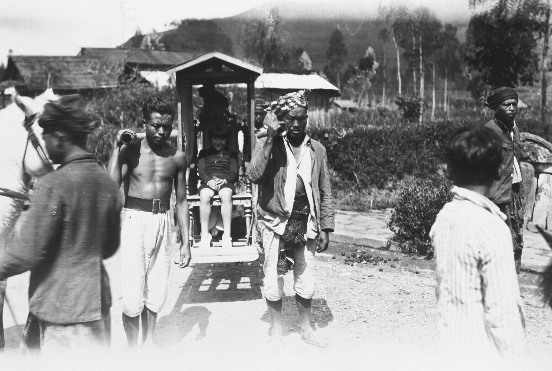 Straatverkopers met hun pikolans in Buitenzorg, met ...